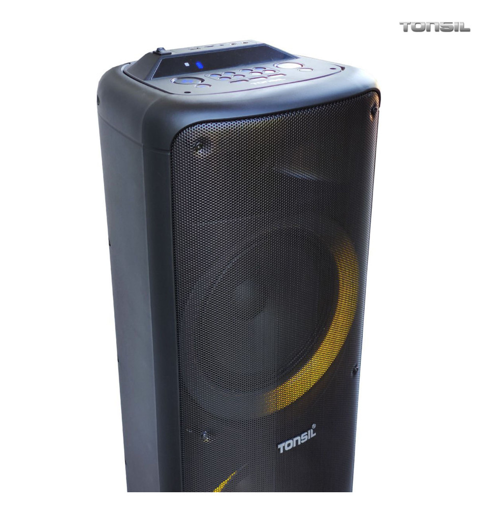 Tonsil PartyDance 1200 – Imprezowy głośnik bezprzewodowy Bluetooth LED z 2 mikrofonami do karaoke
