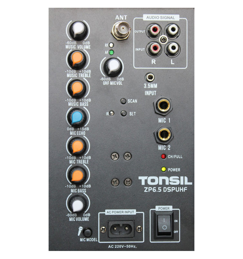 Wbudowany Bluetooth i wejście AUX dają uniwersalne możliwości odtworzenia ulubionych utworów. Procesor DSP zadba o najlepszą jakość dźwięku. Tonsil ZP 6.5 DSPUHF posiada również bogate możliwości regulacji barwy dźwięku oraz efekt Echo.
