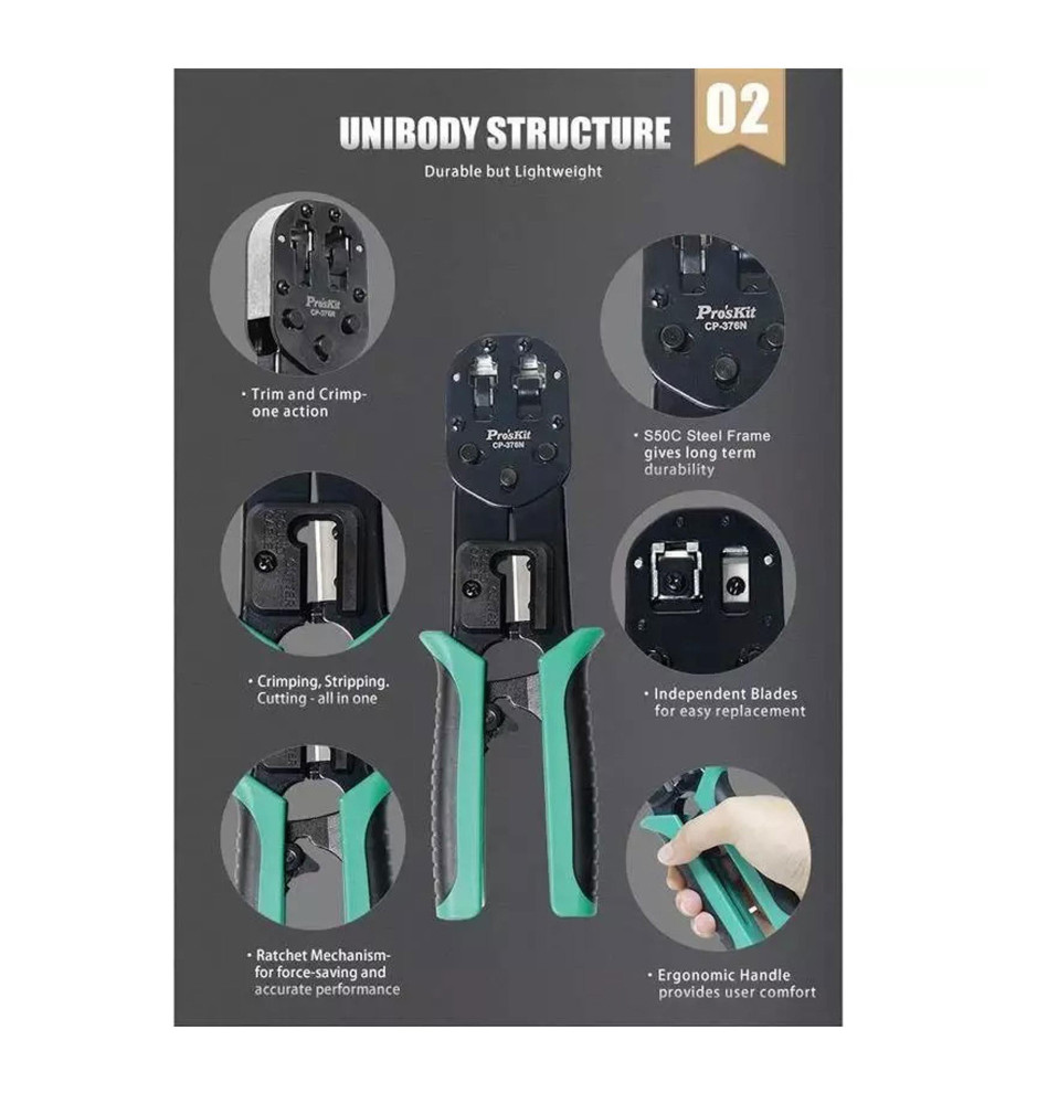 CP-376N Proskit - zaciskacz wtyków 4P, 6P, 8P przelotowych