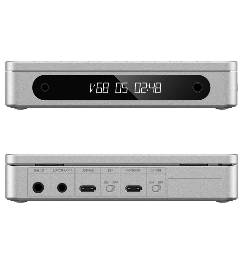 Przenośny odtwarzacz CD DM13 oferuje różnorodne wyjścia, w tym słuchawkowe 3,5 mm i 4,4 mm oraz cyfrowe optyczne i koncentryczne, umożliwiając łatwą integrację z różnymi systemami audio. Funkcja zgrywania płyt CD umożliwia nagrywanie ulubionych płyt CD do plików WAV na przenośnym nośniku pamięci, co ułatwia dzielenie się muzyką z innymi.
