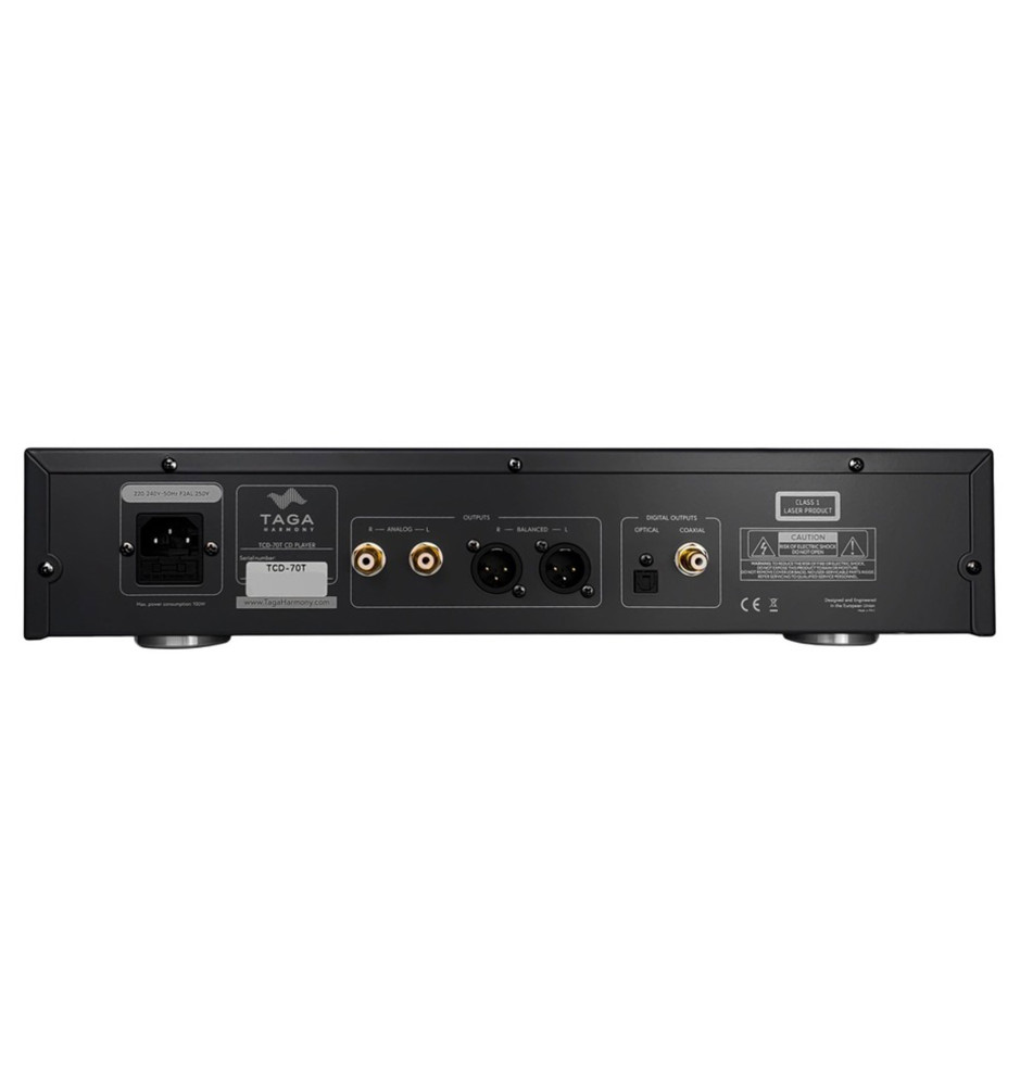 Wyposażony w lampy 2 x 6N2 w ceramicznych gniazdach dla wyjścia RCA, odtwarzacz Taga Harmony TCD-70T oferuje ciepłe i bogate brzmienie, które doceni każdy miłośnik muzyki. Dodatkowo, wysokiej klasy złącza RCA zostały wykonane z mosiądzu i pokryte złotem w celu zapewnienia najwyższej jakości połączenia.