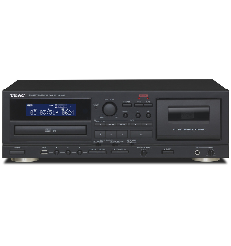 Umożliwia nagrywanie plików w formacie MP3 na nośniku pamięci typu USB Pendrive lub analogowo na kasetach magnetofonowych. Nagrania MP3 są automatycznie katalogowane w folderach w zależności od źródła dźwięku (CD, LINE lub TAPE). Wbudowany efekt echo oraz wejście mikrofonowe czynią z TEAC AD-850 wspaniałe urządzenie do domowego karaoke.