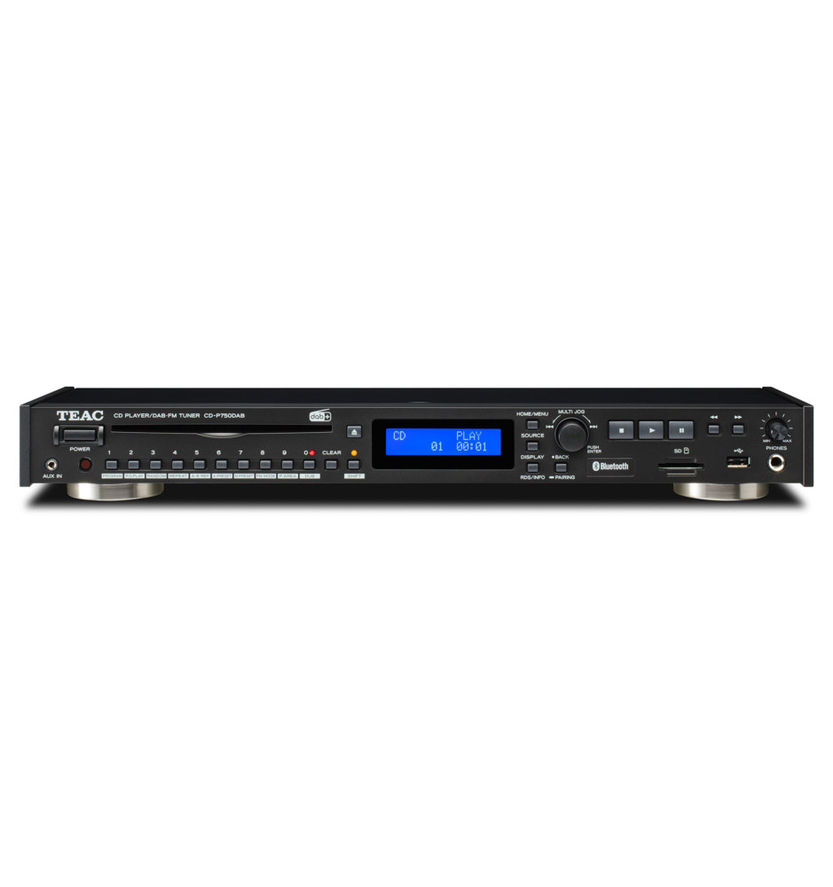 TEAC CD-P750DAB to wszechstronny odtwarzacz CD z tunerem DAB+/FM, Bluetooth® i możliwością nagrywania.