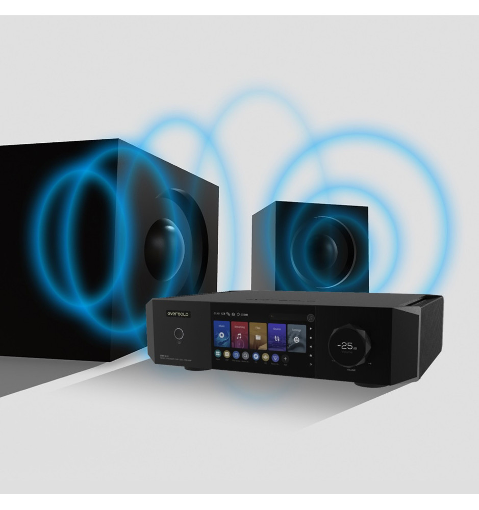 Odtwarzacz obsługuje zarówno połączenia Ethernet, jak i Wi-Fi, oferując łatwą integrację z domową siecią. Dzięki aplikacji mobilnej EverSolo Control można zdalnie sterować DMP-A10, w tym włączać i wyłączać urządzenie funkcją Wake-on-LAN. Wbudowany procesor DSP umożliwia precyzyjne dostosowanie parametrów dźwięku, takich jak korekcja parametryczna, filtry dolno- i górnoprzepustowe oraz korekcja akustyczna pomieszczenia, co gwarantuje perfekcyjne dostosowanie brzmienia do warunków odsłuchowych.