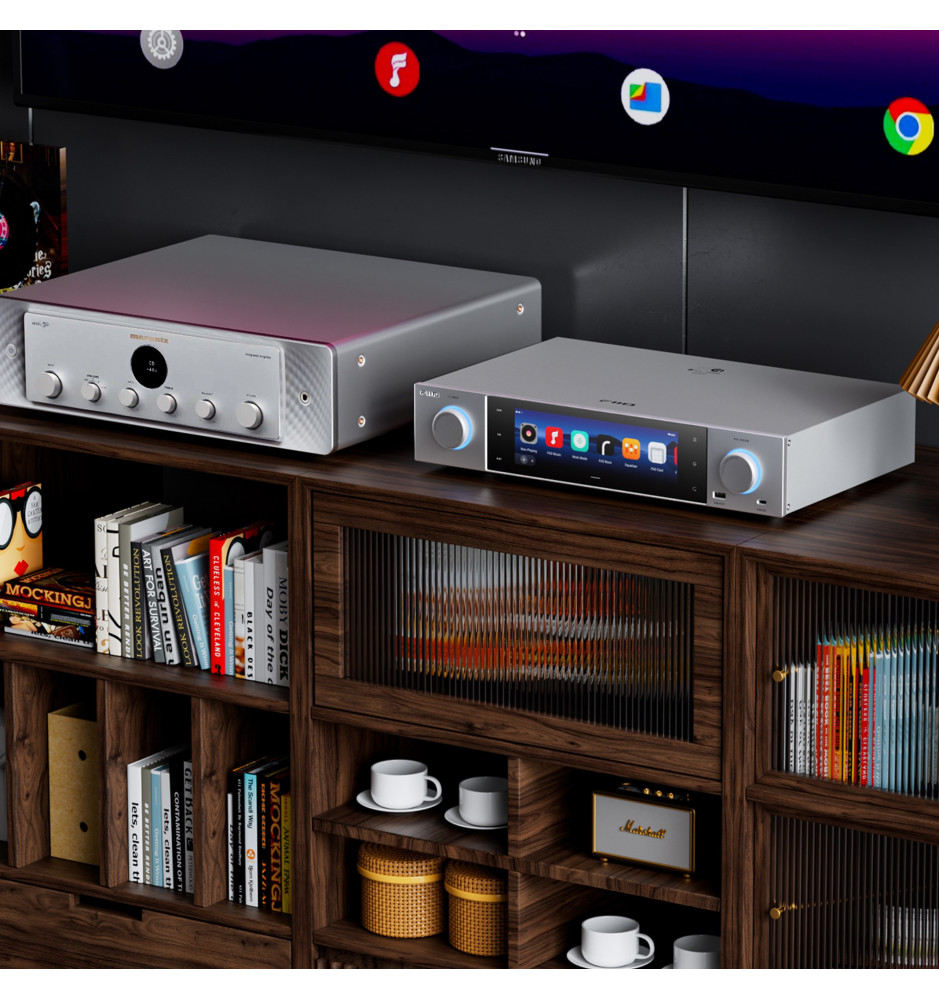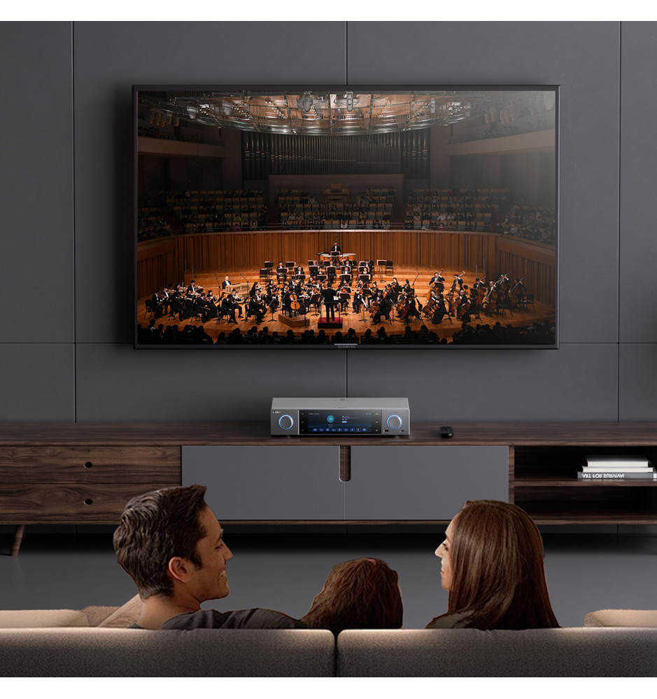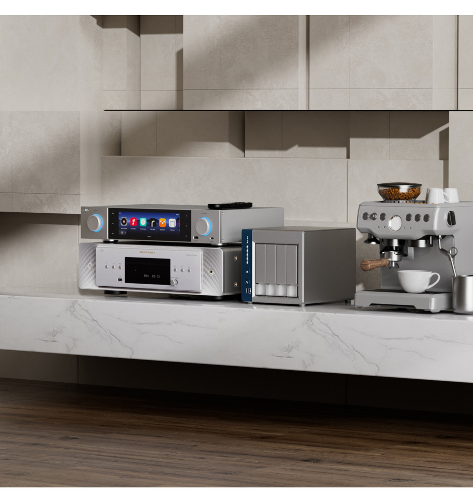 Wszechstronny, pełnowymiarowy streamer audio Hi-Res, łączący w sobie funkcje odtwarzacza strumieniowego, dekodera, przedwzmacniacza oraz cyfrowego jukeboxa.