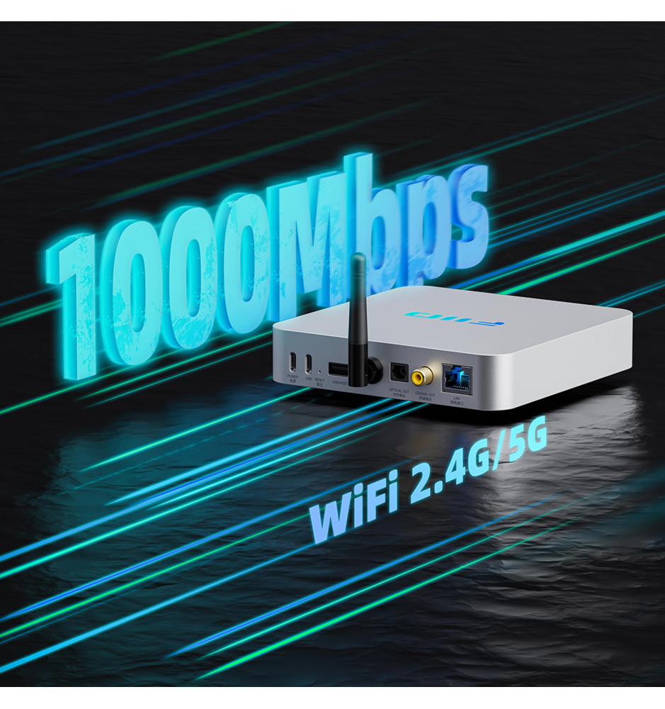 Dzięki zaawansowanemu, wielordzeniowemu procesorowi X2000, streamer FiiO SR11 oferuje niezrównaną stabilność i wydajność podczas strumieniowania muzyki, zapewniając doskonałe wrażenia odsłuchowe. Urządzenie posiada dwuzakresowy moduł Wi-Fi (2.4 GHz i 5 GHz) oraz port Ethernet 1000 Mbps, gwarantując pewne połączenie sieciowe i szybkie przesyłanie danych.