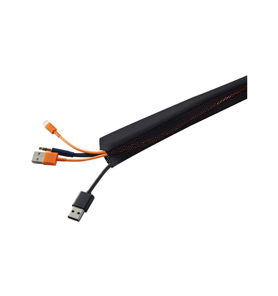 Osłona na przewody o długości 2 metrów, która pomieści nawet 10 kabli o przeciętnej średnicy. Dzięki zastosowaniu zapięcia na rzep, dodawanie lub wyjmowanie kabli ze skarpety kablowej jest łatwe. W razie potrzeby można ją łatwo skrócić lub podzielić na mniejsze części przy użyciu nożyczek.