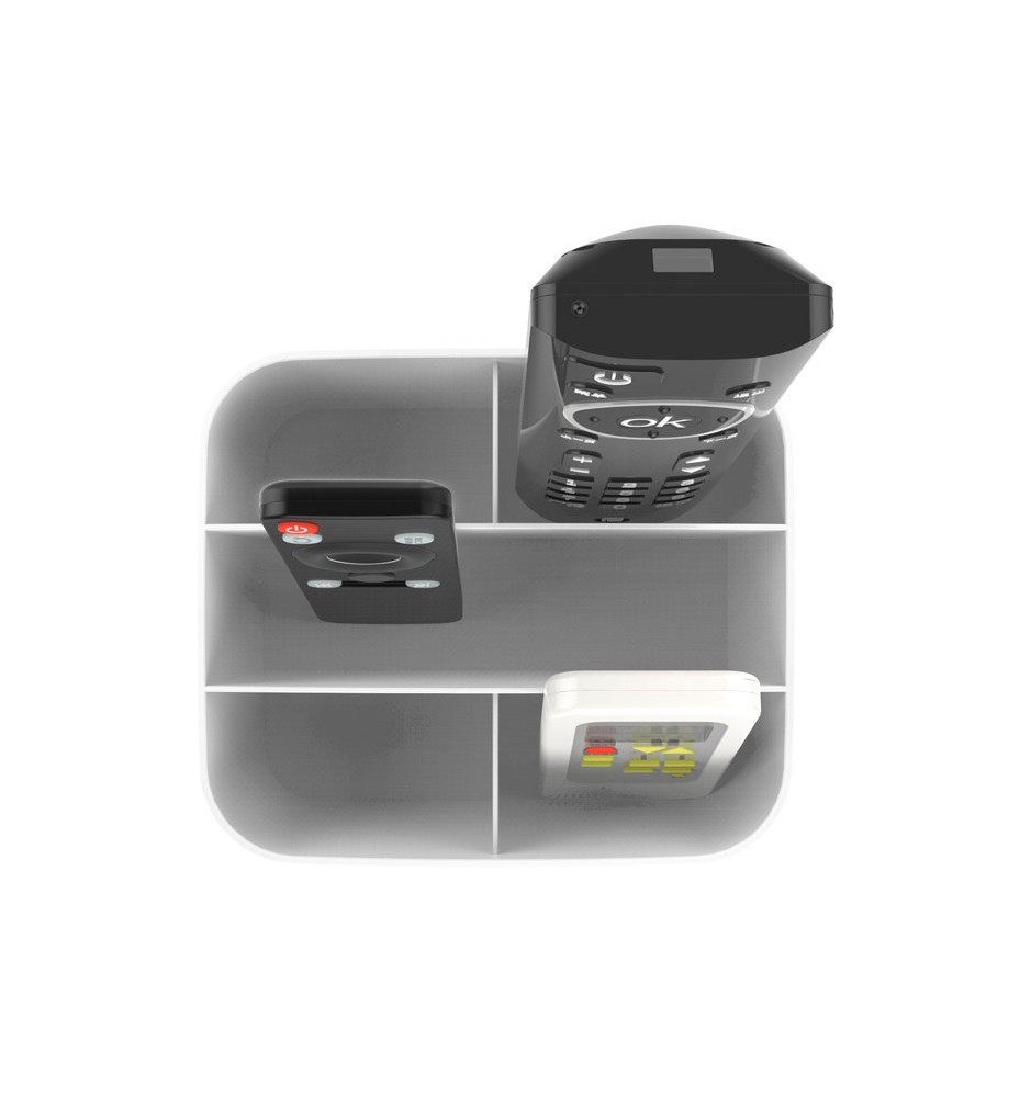 Organizer na piloty Mozos Rch-2 pozwala zapanować nad porządkiem urządzeń sterujących, dzięki umieszczeniu ich w jednym miejscu. Koniec z poszukiwaniem pilota lub telefonu i przypadkowym ich uszkodzeniem podczas siadania na kanapie – rozsiądź się wygodnie i wyciągnij rękę po dowolne urządzenie, które zawsze będzie leżeć na swoim miejscu.