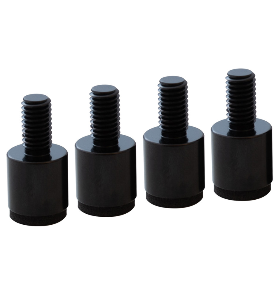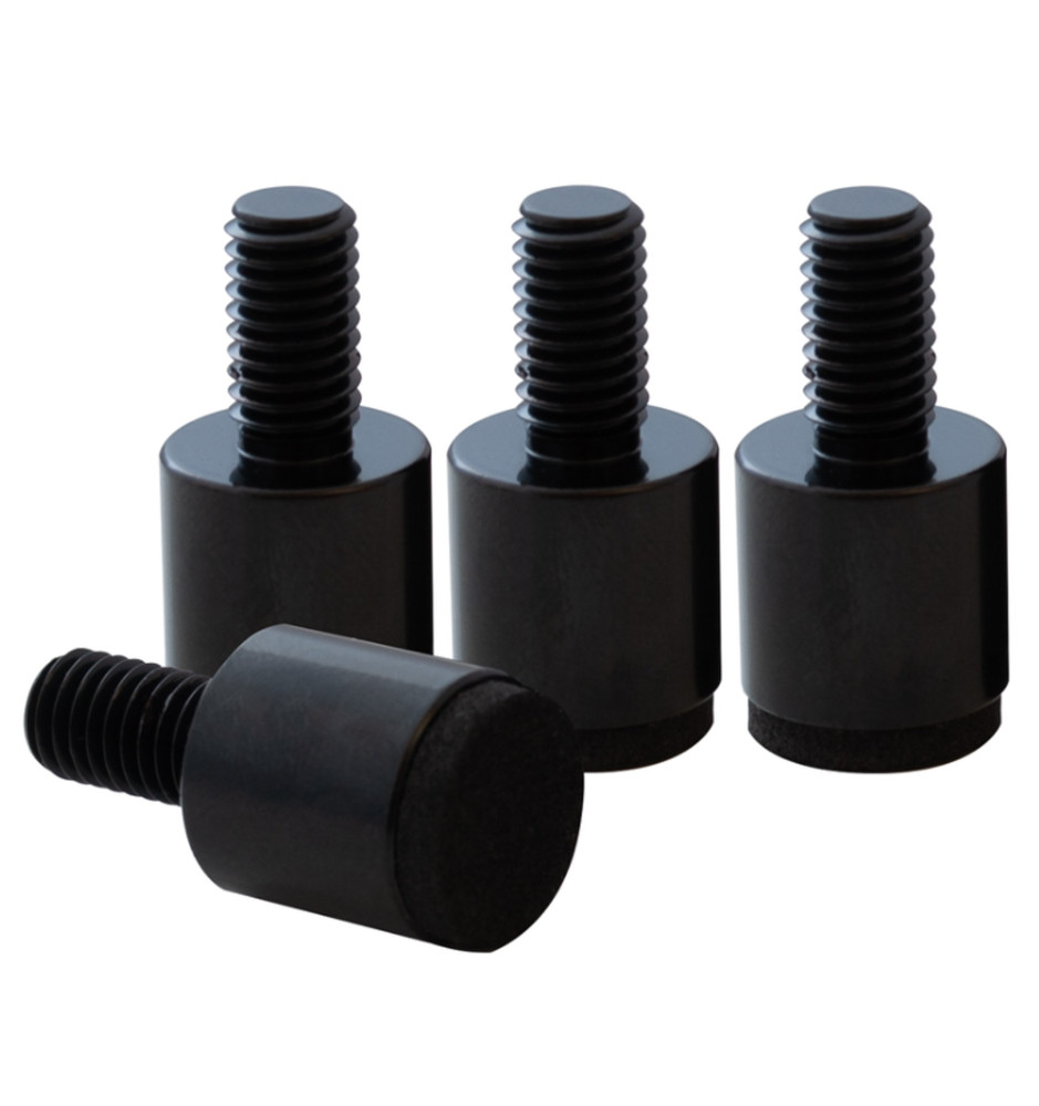 Zestaw 4 sztuk czarnych nóżek Taga Harmony TSF-003 do kolumn głośnikowych o doskonałych właściwościach izolujących i eleganckim, uniwersalnym designie. Stanowią idealny wybór do wszystkich typów głośników podłogowych o wadze do 45 kilogramów, posiadających gwinty mocujące M8. Od spodu zostały wyposażone w specjalne podkładki chroniące podłoże przed zarysowaniem.