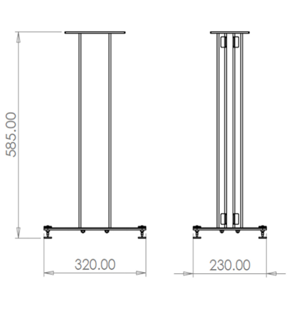 Para wysokiej jakości stojaków wykonanych z metalu, dedykowanych do kolumn głośnikowych Klipsch The Fives. Cokół stojaków posiada kolce o regulowanej wysokości, które gwarantują stabilizację oraz pochłaniają wibracje.