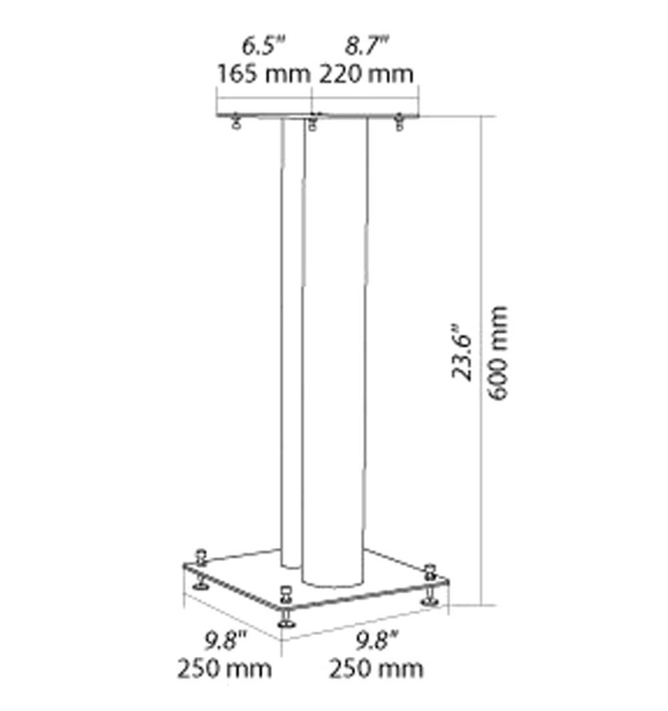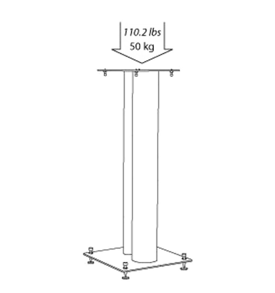 Podstawy standów głośnikowych zostały wyposażone w kolce z regulacją wysokości. Dzięki nim możliwe jest pewne, idealnie wypoziomowane ustawienie stojaków oraz redukcja wibracji przenoszonych na podłoże. Redukcja wibracji oraz idealne ustawienie przekładają się na znaczną poprawę właściwości akustycznych głośników.