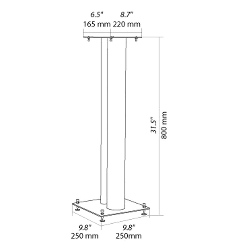 Podstawy standów głośnikowych zostały wyposażone w kolce z regulacją wysokości. Dzięki nim możliwe jest pewne, idealnie wypoziomowane ustawienie stojaków oraz redukcja wibracji przenoszonych na podłoże. Redukcja wibracji oraz idealne ustawienie przekładają się na znaczną poprawę właściwości akustycznych głośników.