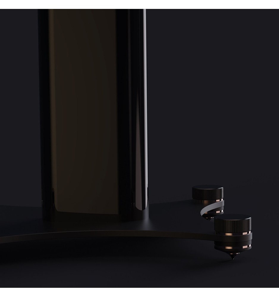 Oryginalne stojaki SSLR-HGB zachowują prawdziwie luksusową stylistykę, idealnie komponując się z kolumnami głośnikowymi Perlisten z serii S. Wyróżniają się optymalną wysokością oraz lekkim pochyleniem, zapewniając doskonałe warunki akustyczne dla głośników i umożliwiając wydobycie ich maksymalnych możliwości. Dodatkowo, regulowane nóżki z kolcami pozwalają na precyzyjne wypoziomowanie stojaków.