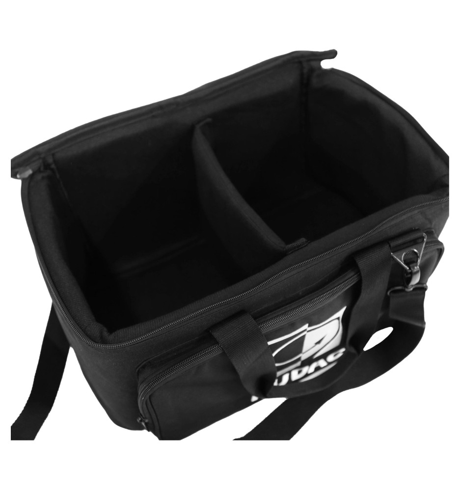 Wygodne przenoszenie torby jest możliwe za sprawą klasycznego uchwytu transportowego oraz dołączonemu paskowi transportowemu. Grube, wyścielane ścianki wewnętrzne torby właściwie zabezpieczają głośniki przed uszkodzeniem wynikającym chociażby z przypadkowego uderzenia.
