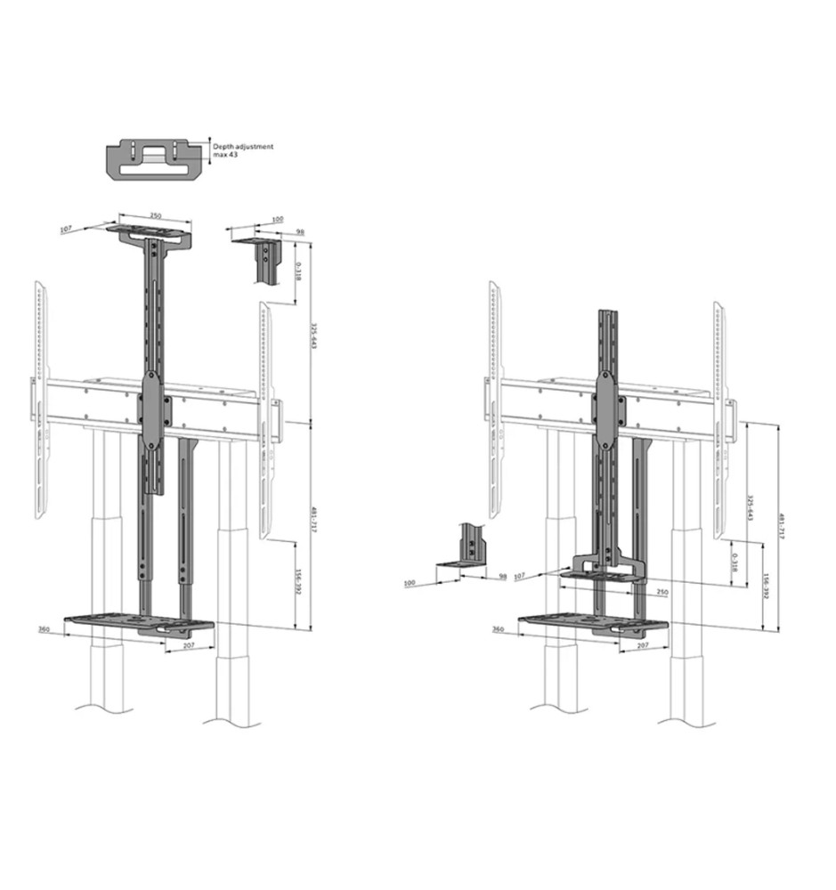 Kamerę można zainstalować zarówno nad, jak i pod ekranem oraz wyregulować jej wysokość w celu dopasowania jej do rozmiaru ekranu. Samą półkę może zostać umieszczona zarówno z przodu, jak i z tyłu stojaka. W zestawie z akcesoriami producent dodał również adapter do kamer konferencyjnych Bose VB1 i VB-S.
