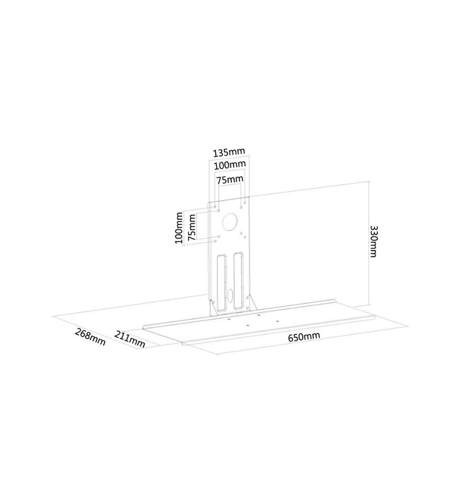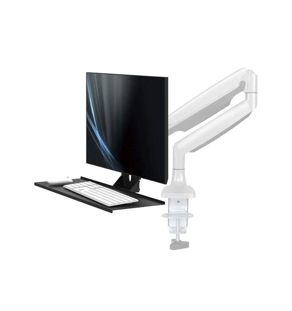 Uniwersalna półka służąca do umieszczania na niej klawiatury oraz myszki komputerowej. Można ją łączyć z dowolnymi uchwytami ściennymi, sufitowymi i biurkowymi wyposażonymi w standard montażowy VESA 75x75 i 100x100 mm.