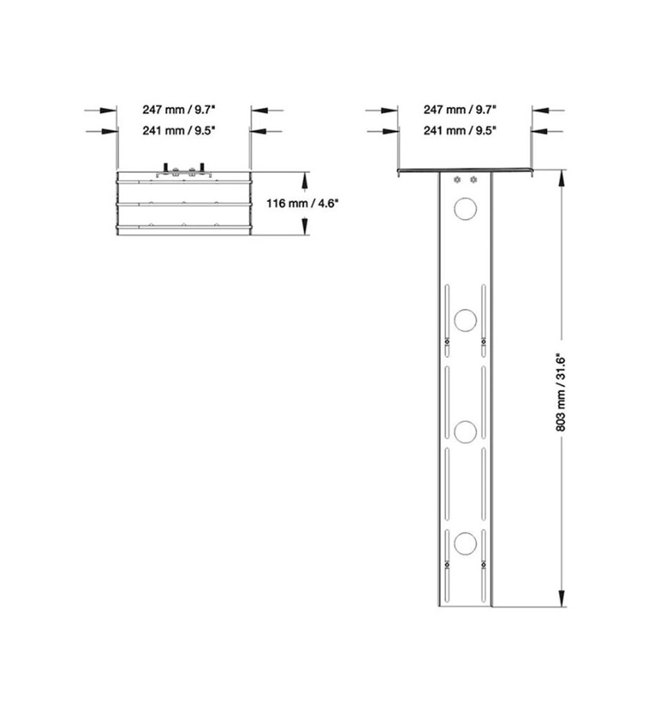 Półkę można zamontować w sposób błyskawiczny używając do tego dostępnych w uchwytach otworów. Po przytwierdzeniu półka trzyma się stabilnie w miejscu również w trakcie regulowania wysokości w stojaku. PLASMA-M2500CAMSHELF2 ma szerokość 24,1 cm i głębokość 11,6 cm, a wysokość pionowej listwy wynosi 80,3 cm. Wraz z produktem otrzymasz wszystkie niezbędne materiały instalacyjne.