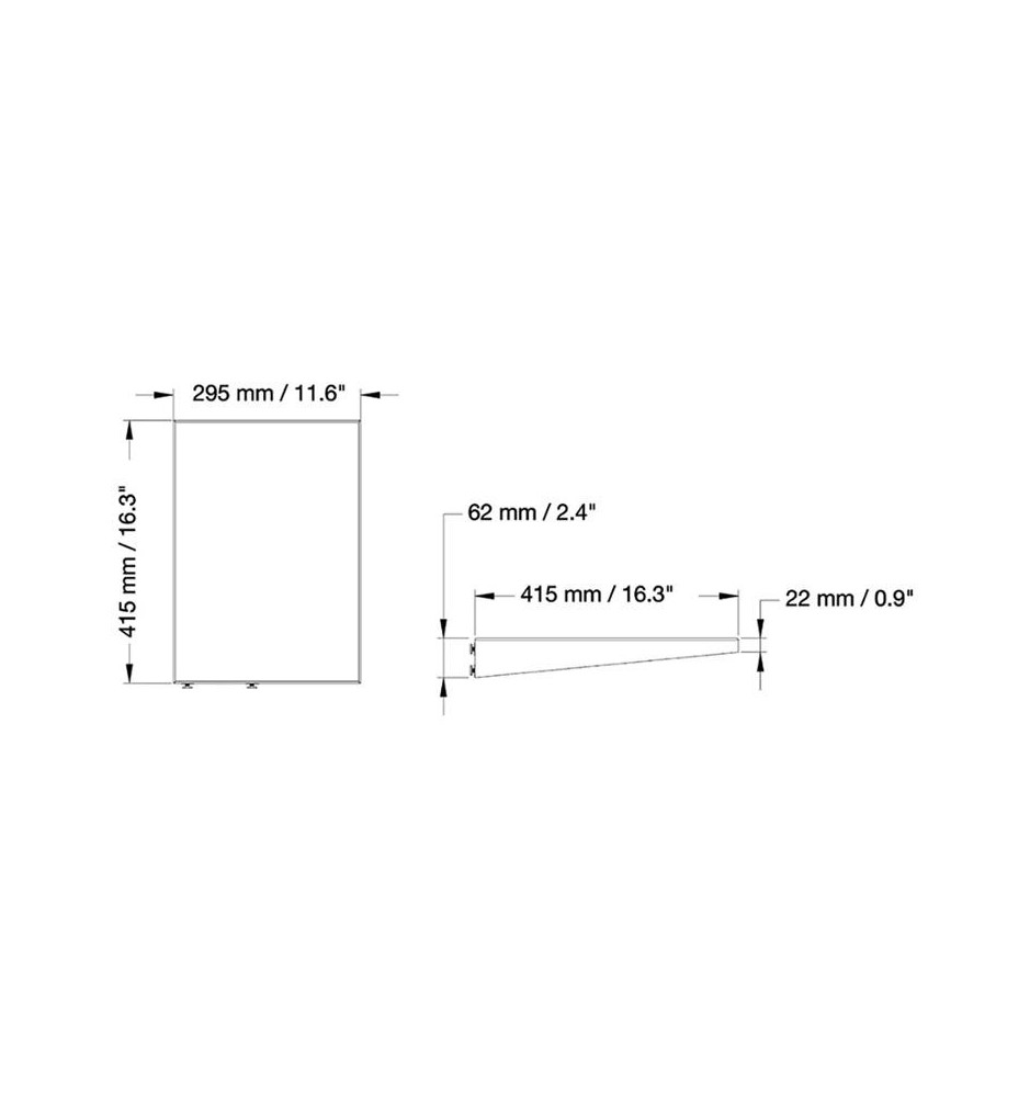 Półkę można zamontować w sposób błyskawiczny używając do tego dostępnych w uchwytach otworów. Po przytwierdzeniu półka trzyma się stabilnie w miejscu również w trakcie regulowania wysokości w stojaku. PLASMA-M2SIDESHELF ma wymiary 41 cm na 29.5 cm, a wraz z produktem otrzymasz wszystkie niezbędne materiały instalacyjne.