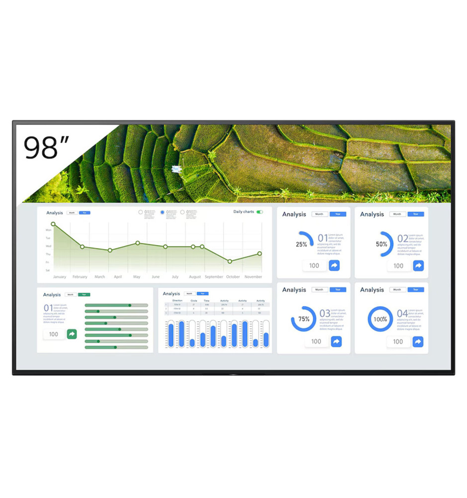 Dzięki kombinacji zaawansowanej technologii obrazu, wysokiej jasności oraz profesjonalnych funkcji instalacyjnych ekran ten doskonale sprawdza się w wymagających środowiskach, od sal konferencyjnych i centrów handlowych po przestrzenie Digital Signage.