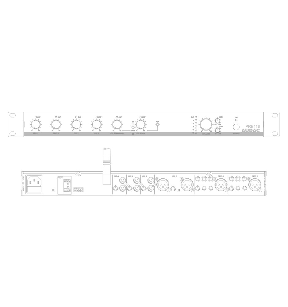 Audac PRE116 to przedwzmacniacz stereo z sześcioma kanałami i zestawem wejść dla sygnałów audio. Sprawdzi się najlepiej jako element małych i średnich instalacji audio w miejscach takich, jak bary, restauracje, obiekty handlowe, biura czy urzędy.