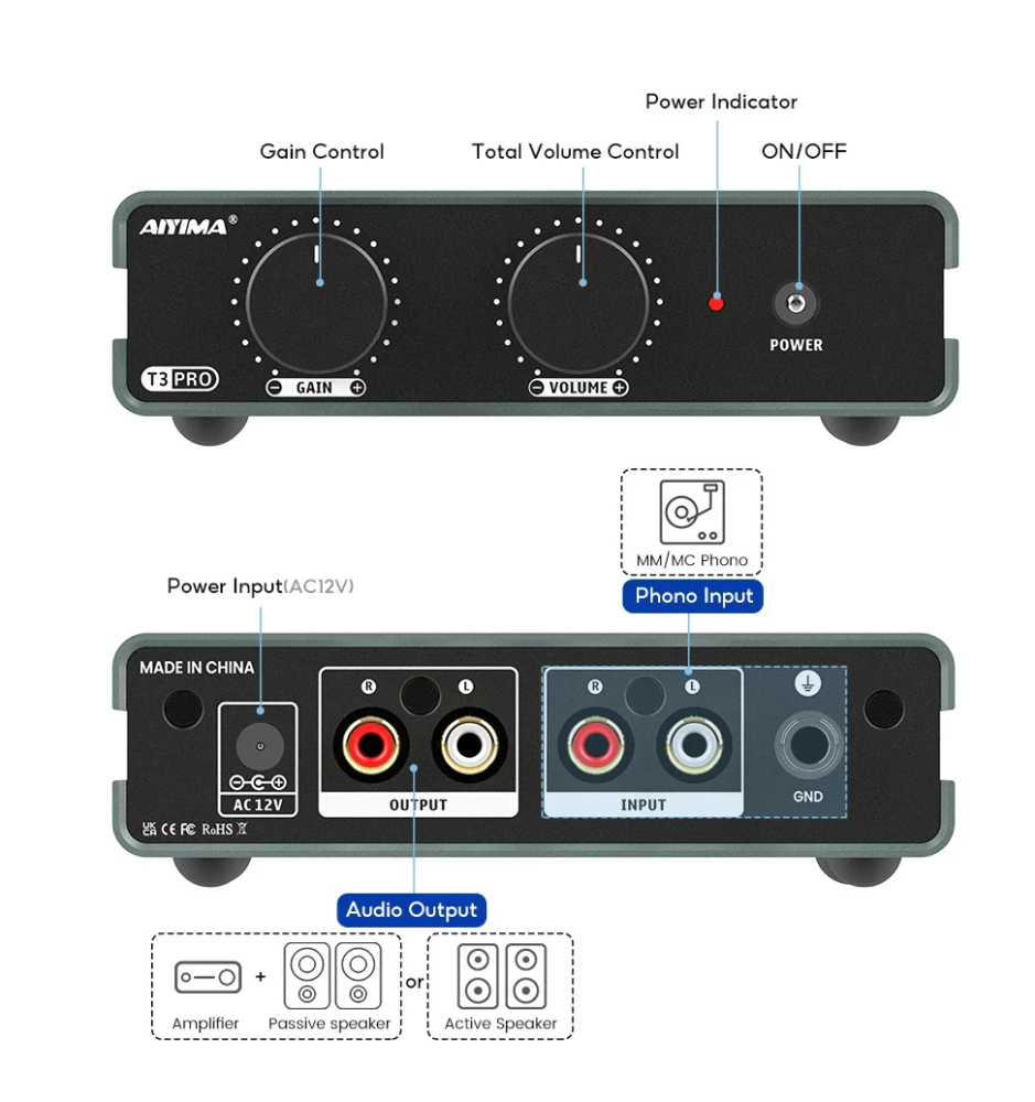 AIYIMA T3 PRO – lampowy przedwzmacniacz gramofonowy MM/MC