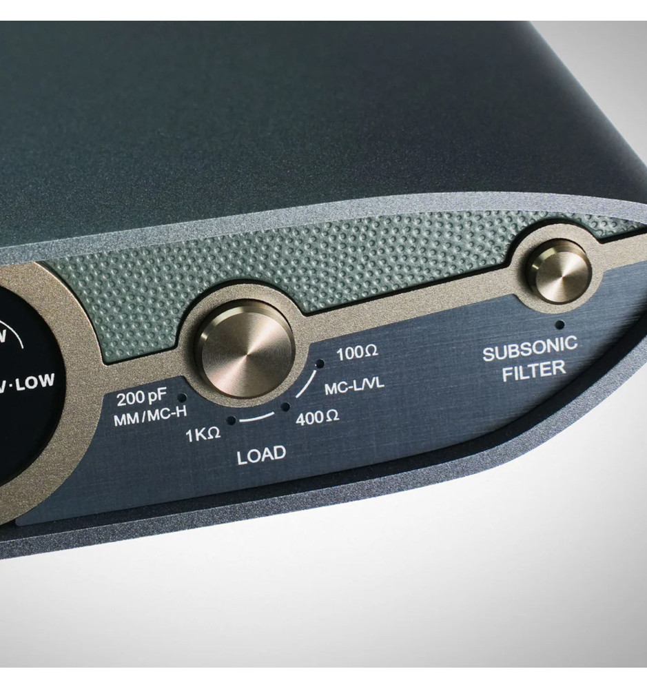 Znajdujący się na froncie, całkowicie nowy przycisk do regulacji ustawień pojemności oraz impedancji wejściowej jest niezależny od czterech ustawień wzmocnienia wybieranych za pomocą przełącznika umieszczonego na tylnym panelu. Takie rozwiązanie umożliwia uzyskanie optymalnych ustawień dla każdego typu wkładki gramofonowej MM i MC.