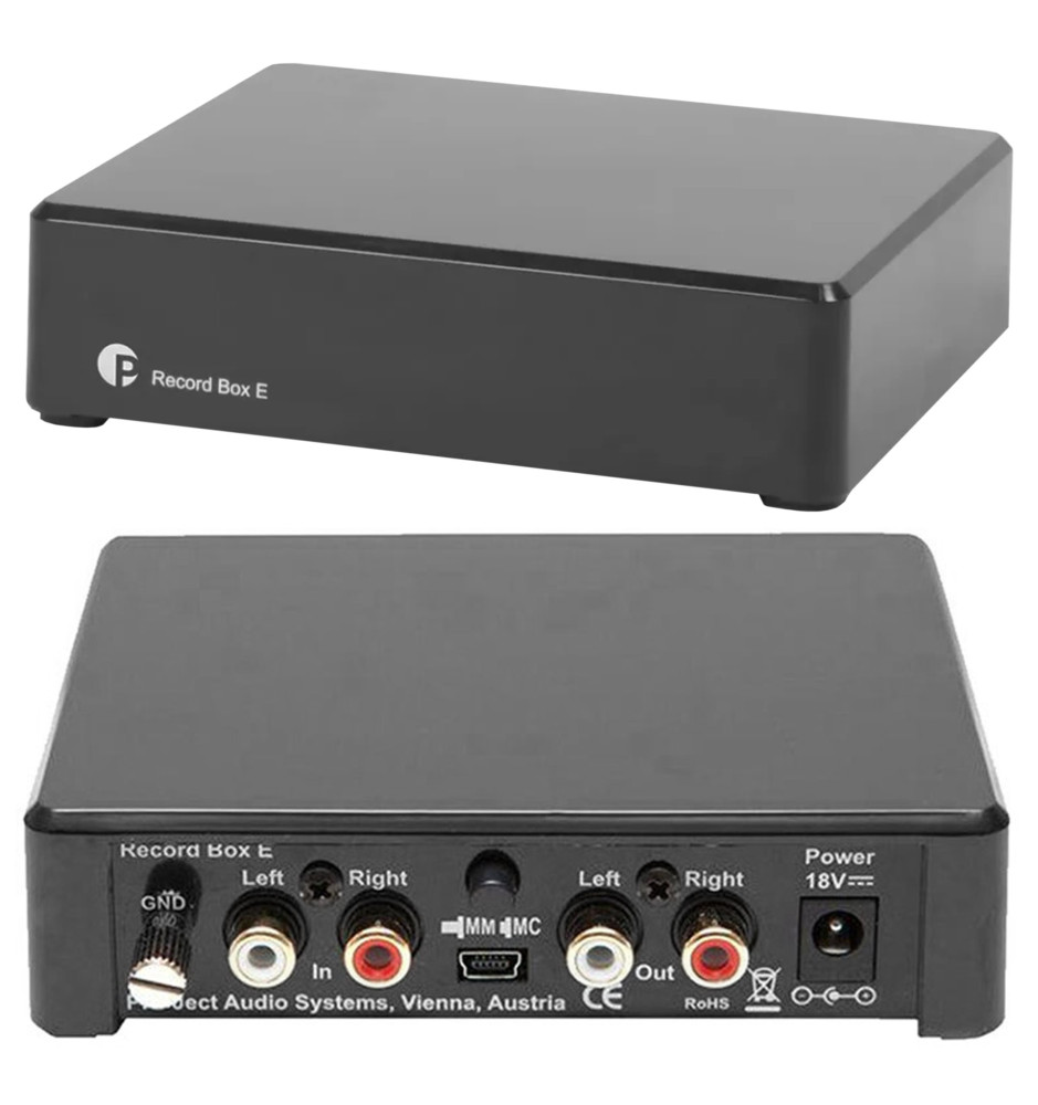 Zastosowanie w Record Box E zaawansowane obwody i konstrukcja SMD pozwalają utrzymać szumy i zniekształcenia na zaskakująco niskim poziomie. Dodatkowo wewnętrzne ekranowanie i wykorzystanie zewnętrznego zasilacza zapobiega zakłóceniom zewnętrznym. Gniazda wejściowe i wyjściowe RCA zostały pokryte złotem, gwarantując najwyższą jakość sygnału.