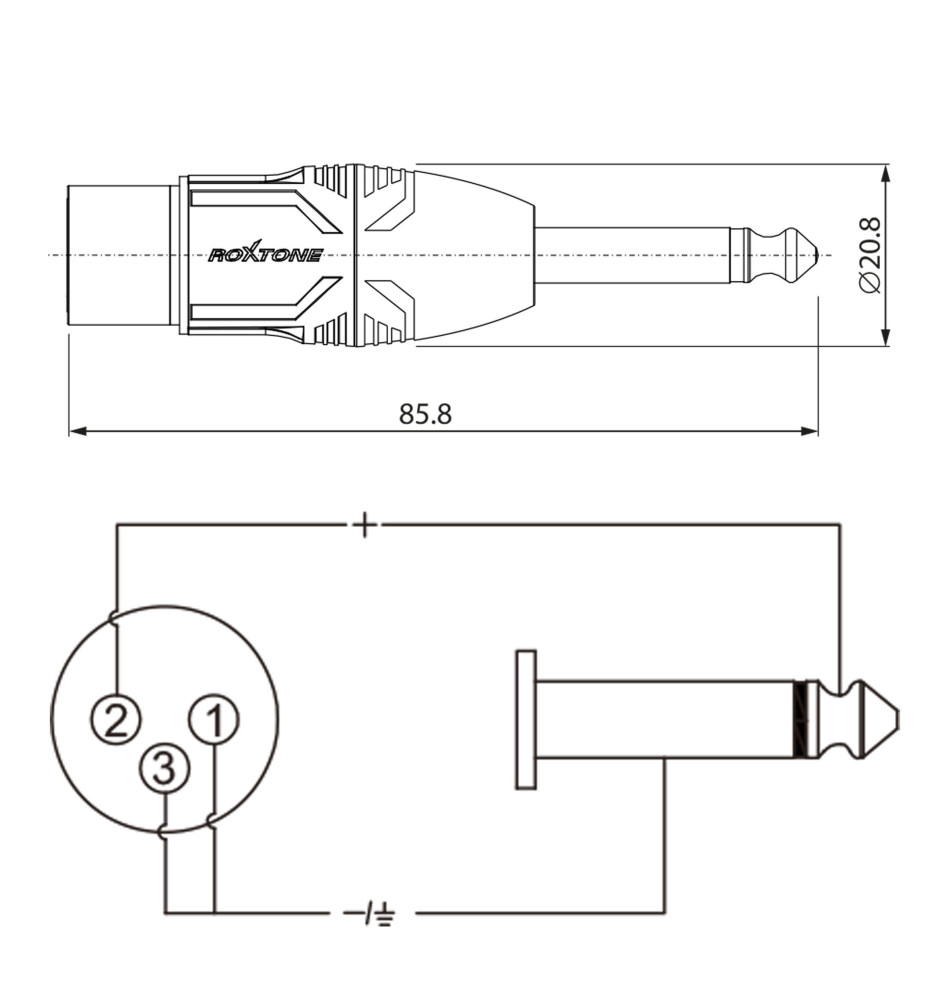 Roxtone RA2XFJM pozwalający na przejście między złączem Jack 6,3 mm do 3-pinowego XLR. Wtyki zostały poddane niklowaniu w celu zapewnienia połączenia pozbawionego zakłóceń sygnału. Ergonomiczna konstrukcja z zaciskami sprawia, że adapter jest bezpieczny i niezawodny.