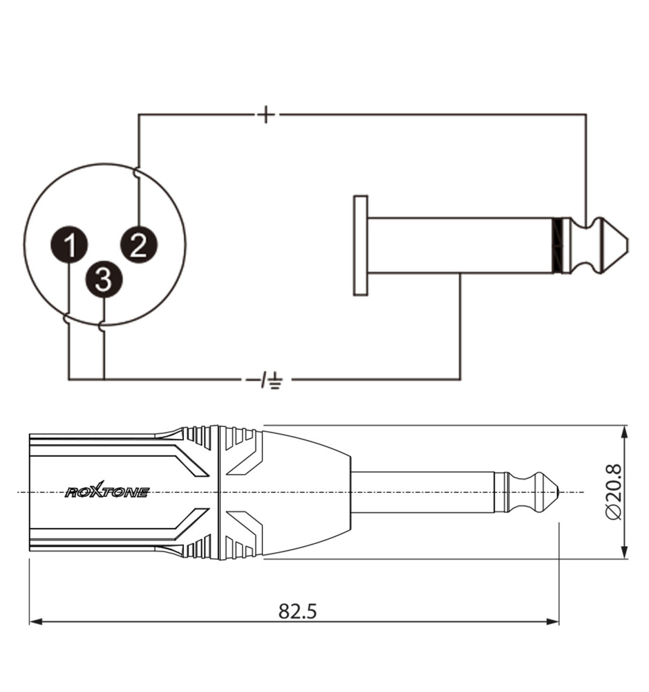 Roxtone RA2XMJM - przejściówka XLR męski - Jack 6,3mm mono