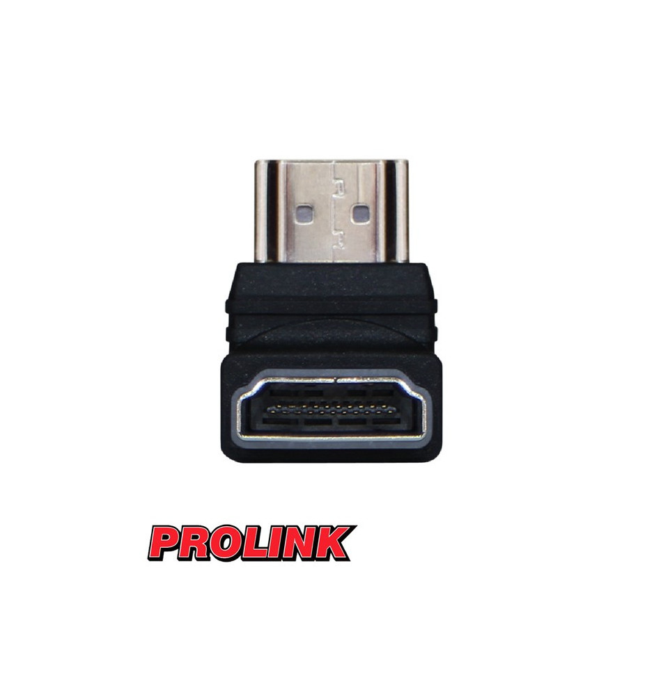 Kątowa przejściówka HDMI marki Prolink umożliwiająca podłączenie w bardzo trudno dostępnych miejscach.