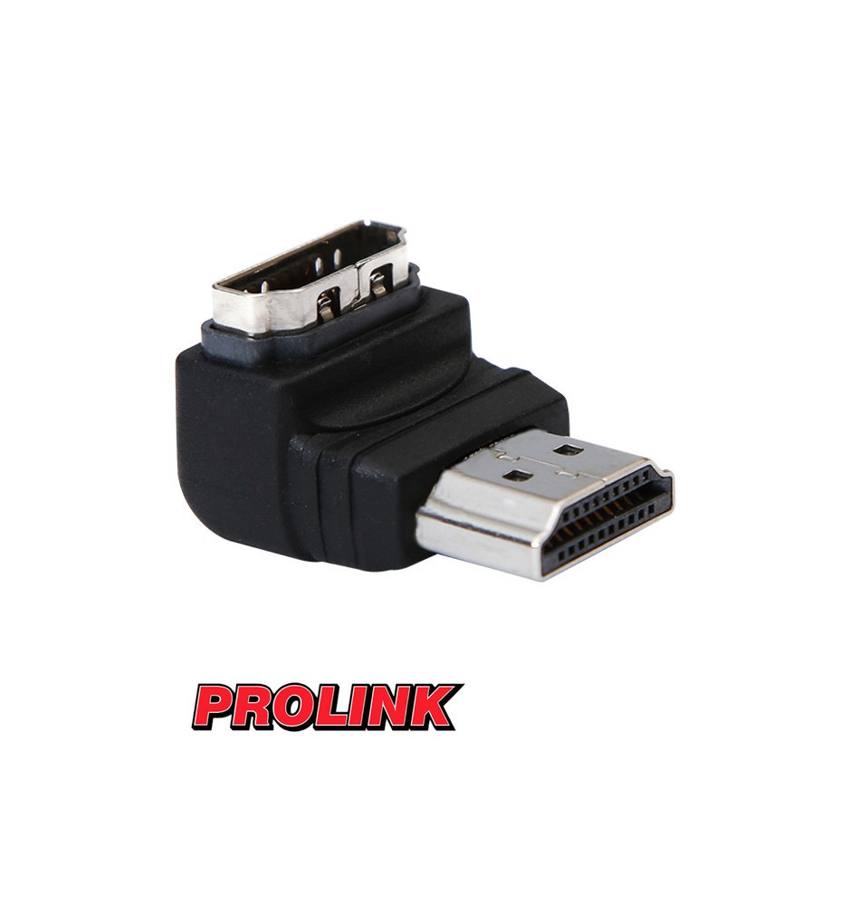 Kątowa przejściówka HDMI marki Prolink pozwala na podłączenie w bardzo trudno dostępnych miejscach.