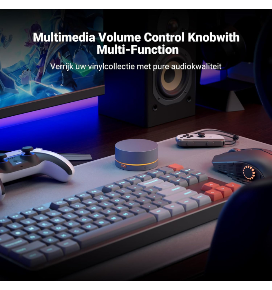 VOL20 to solidny, metalowy kontroler głośności dla wymagających użytkowników — łącze Bluetooth i USB-C, precyzyjne sterowanie odtwarzaniem oraz konfigurowalne podświetlenie RGB. Idealny dla muzyków, graczy i twórców treści szukających wygody i trwałej konstrukcji.