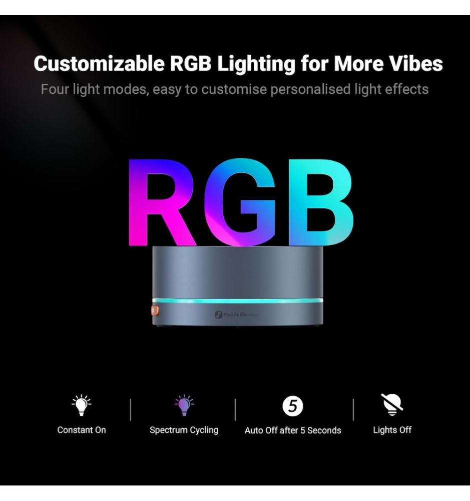 Fosi Audio VOL20 łączy elegancką, metalową konstrukcję z praktycznymi funkcjami: precyzyjne sterowanie głośnością, pełna kontrola odtwarzania, elastyczne łącza Bluetooth i USB-C oraz przyjemne, konfigurowalne podświetlenie RGB. To urządzenie dla tych, którzy oczekują trwałości, wygody i pełnej kontroli nad dźwiękiem — wybierz VOL20 i podnieś komfort korzystania z multimediów.