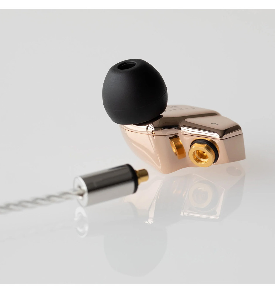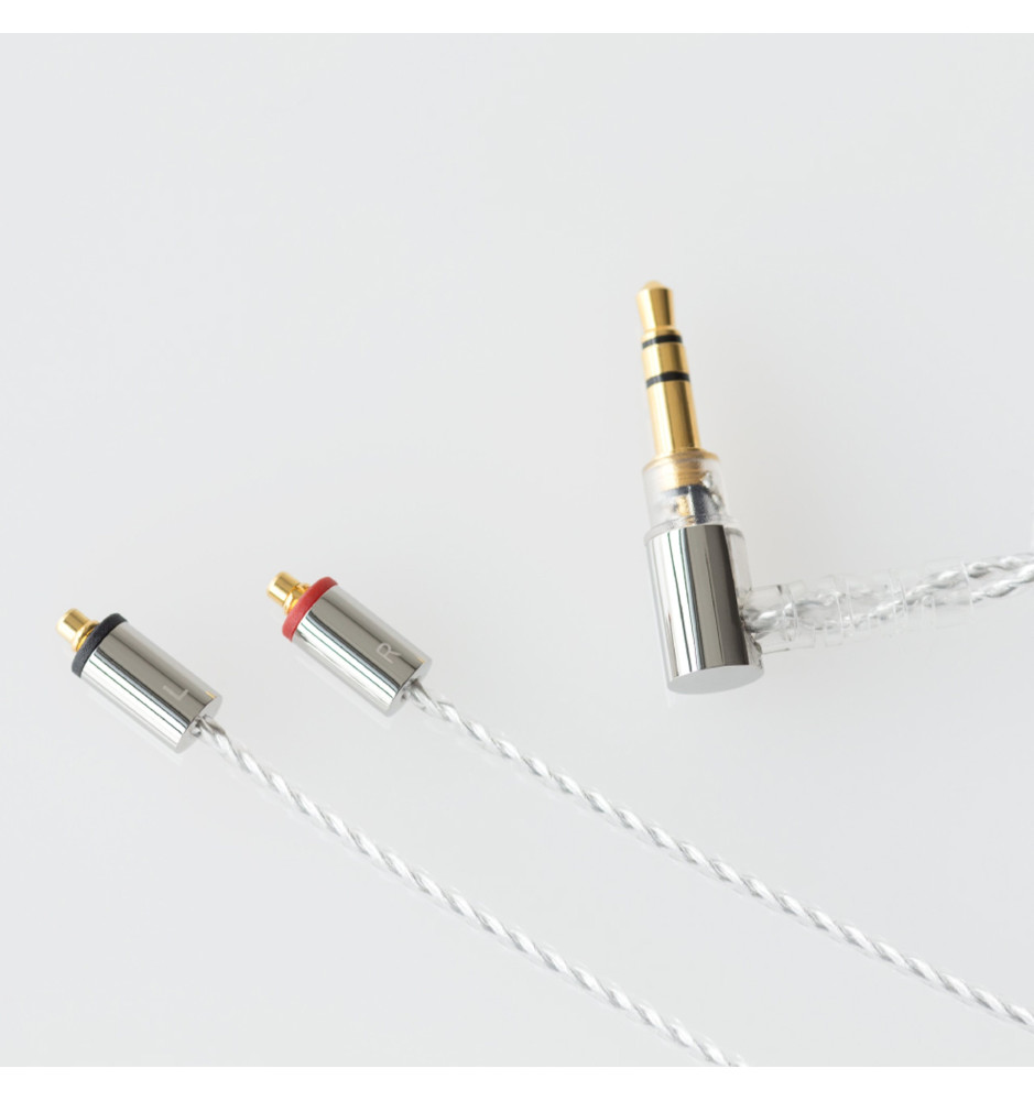 Słuchawki mają złącza MMCX oraz przewód wykonany z miedzi OFC powlekanej srebrem. Izolacja używa materiału JUNFLON® (niska przenikalność), co zapewnia szybki przesył sygnału i ogranicza mikrofonowanie. Przewód jest elastyczny i odporny, a jego konstrukcja została przetestowana przy ponad 50 000 zgięć.