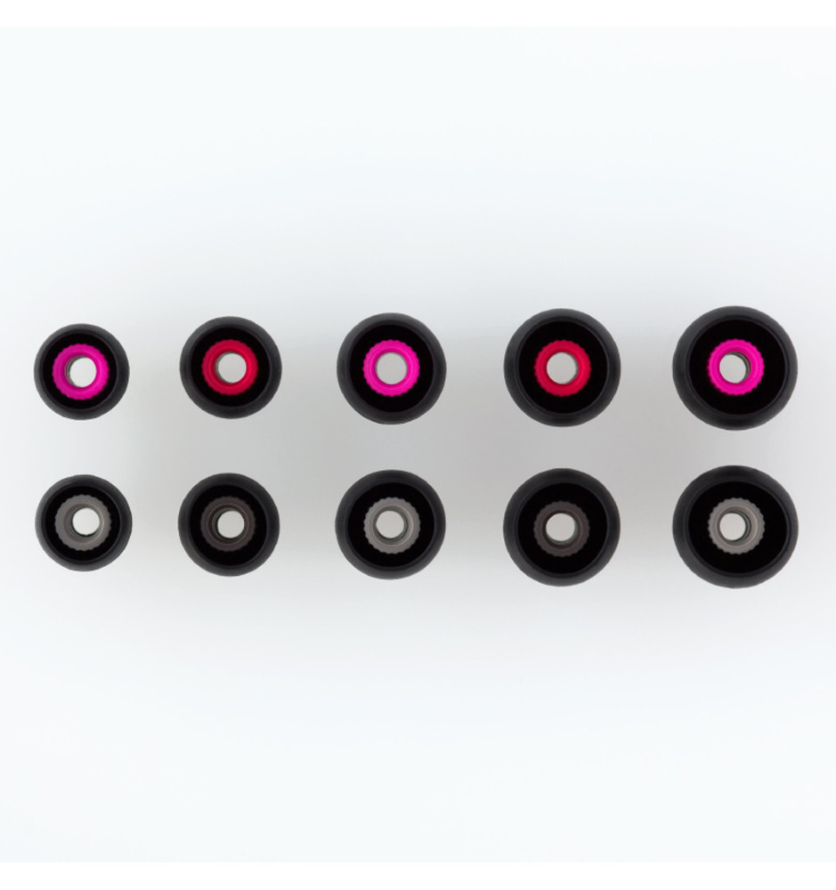 W zestawie: etui z silikonu, 5 rozmiarów końcówek silikonowych (SS, S, M, L, LL), para zaczepów na ucho.