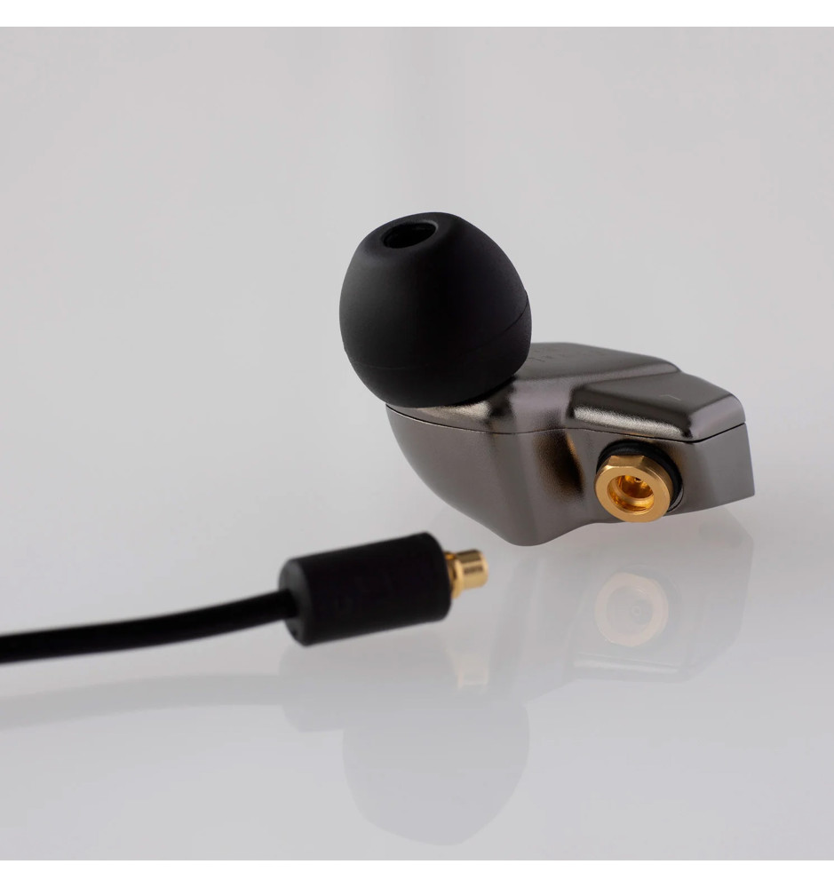 Słuchawki wyposażone są w wysokiej jakości przewód OFC 1,2 metra zakończony pozłacanymi złączami MMCX, co zapewnia czyste połączenie, długą trwałość i możliwość wymiany kabla. Do zestawu dołączono zauszniki, które minimalizują efekt mikrofonowy i poprawiają stabilność prowadzenia przewodu.