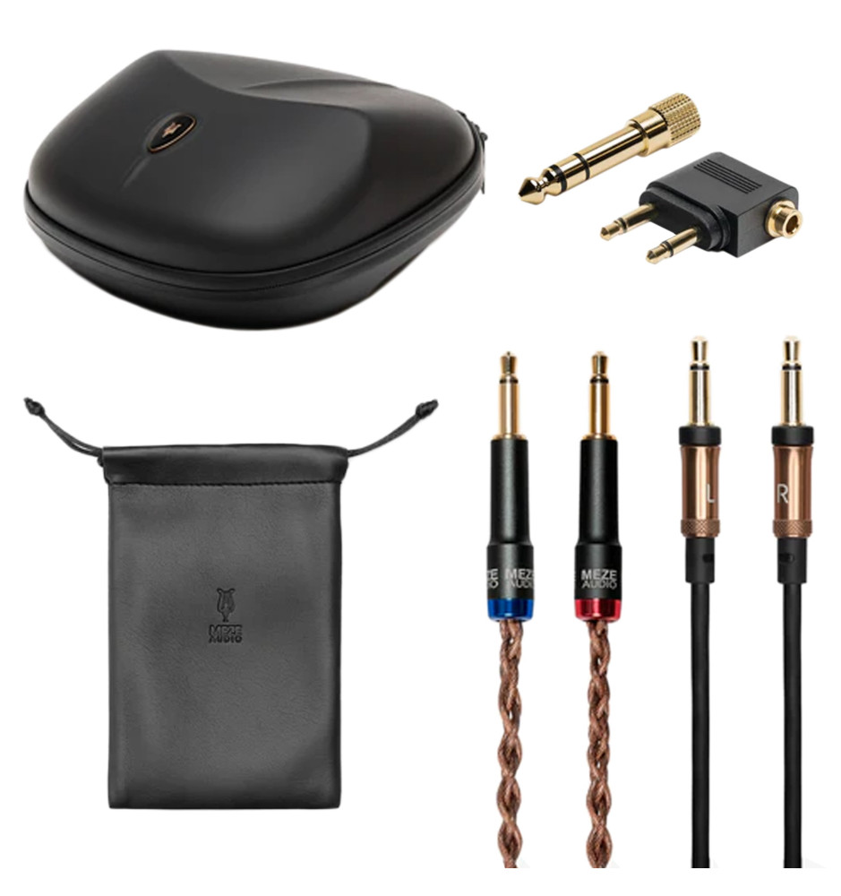 Aby zagwarantować szeroką kompatybilność słuchawek Liric w zestawie znajdują się dwa najwyższej jakości odłączane przewody, zakończone wtykami 4,4mm oraz 3,5mm. Dodatkowo do słuchawek dołączony jest adapter jack do 6,3mm, przejściówka samolotowa, woreczek do przechowywania akcesoriów oraz sztywne etui EVA z aksamitną wyściółką.