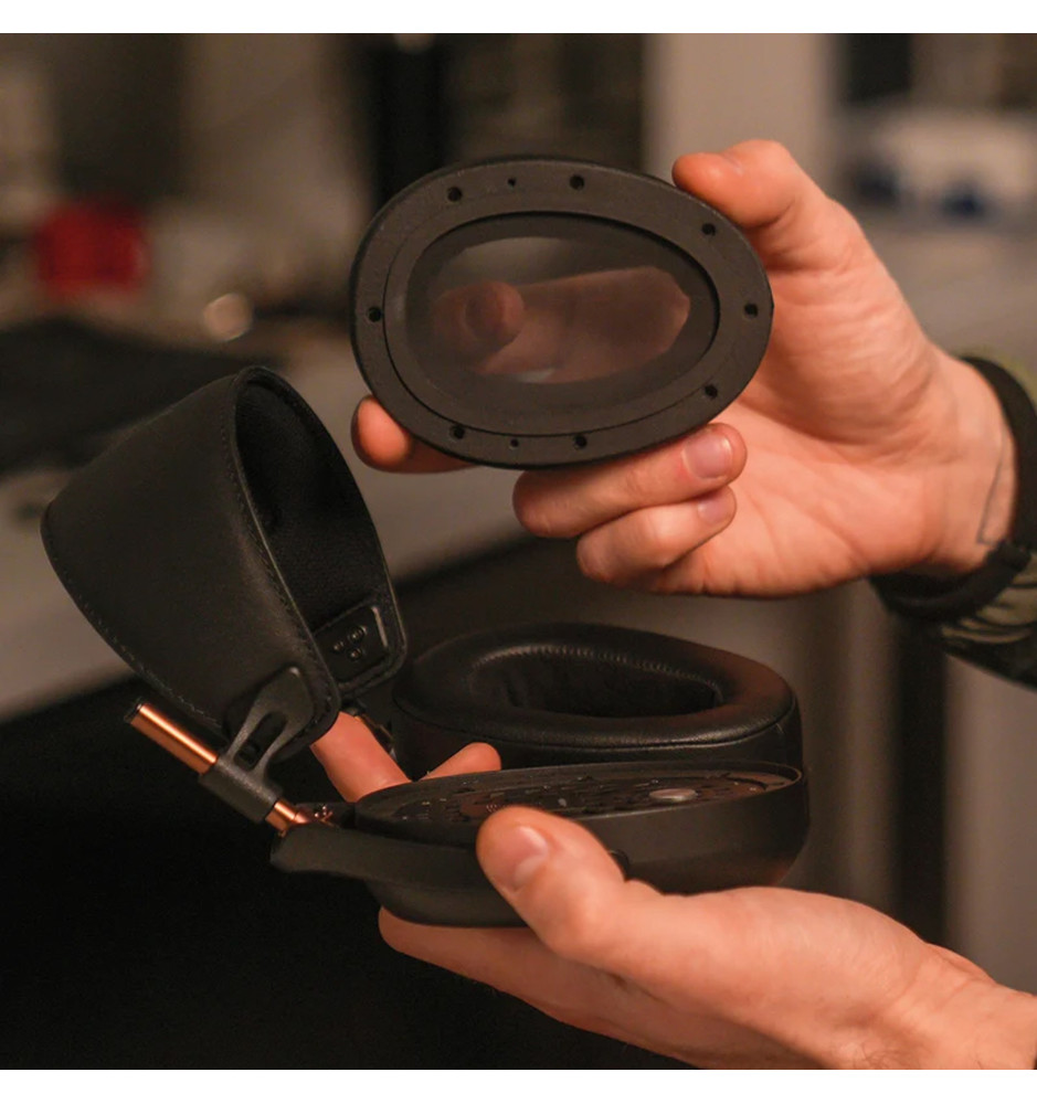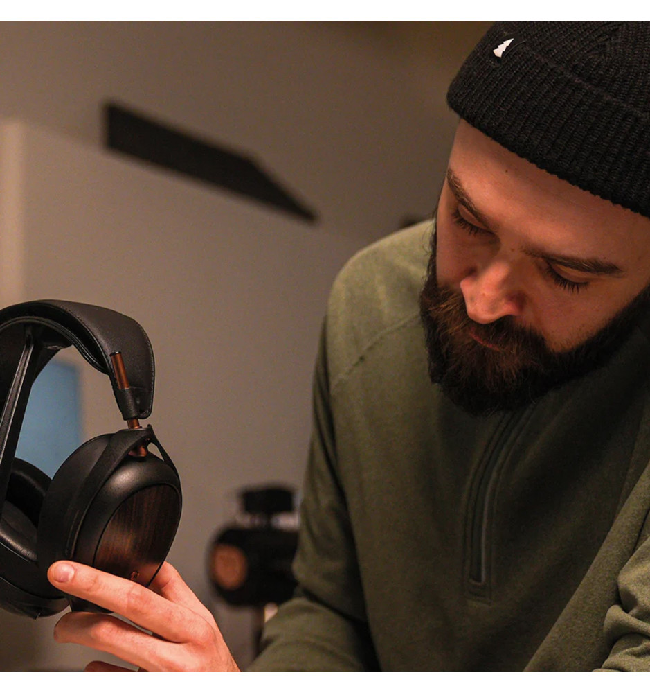 Słuchawki Liric 2-generacji zostały na nowo starannie dostrojone, aby umożliwić uzyskanie czystego, zrównoważonego i dokładnego dźwięku z odrobiną ciepła oraz posiadają przeprojektowane, magnetycznie odłączane nauszniki wykonane z naturalnego drewna hebanowego Macassar.