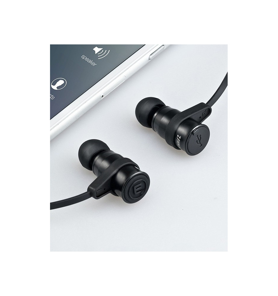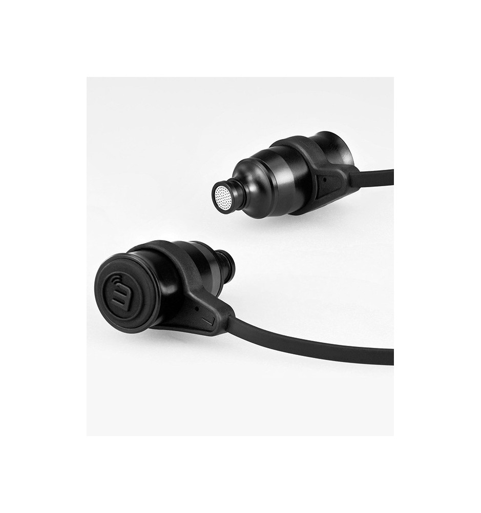 Brainwavz BLU-200 to dokanałowe, bezprzewodowe słuchawki Bluetooth wykończone matowym, czarnym aluminium.