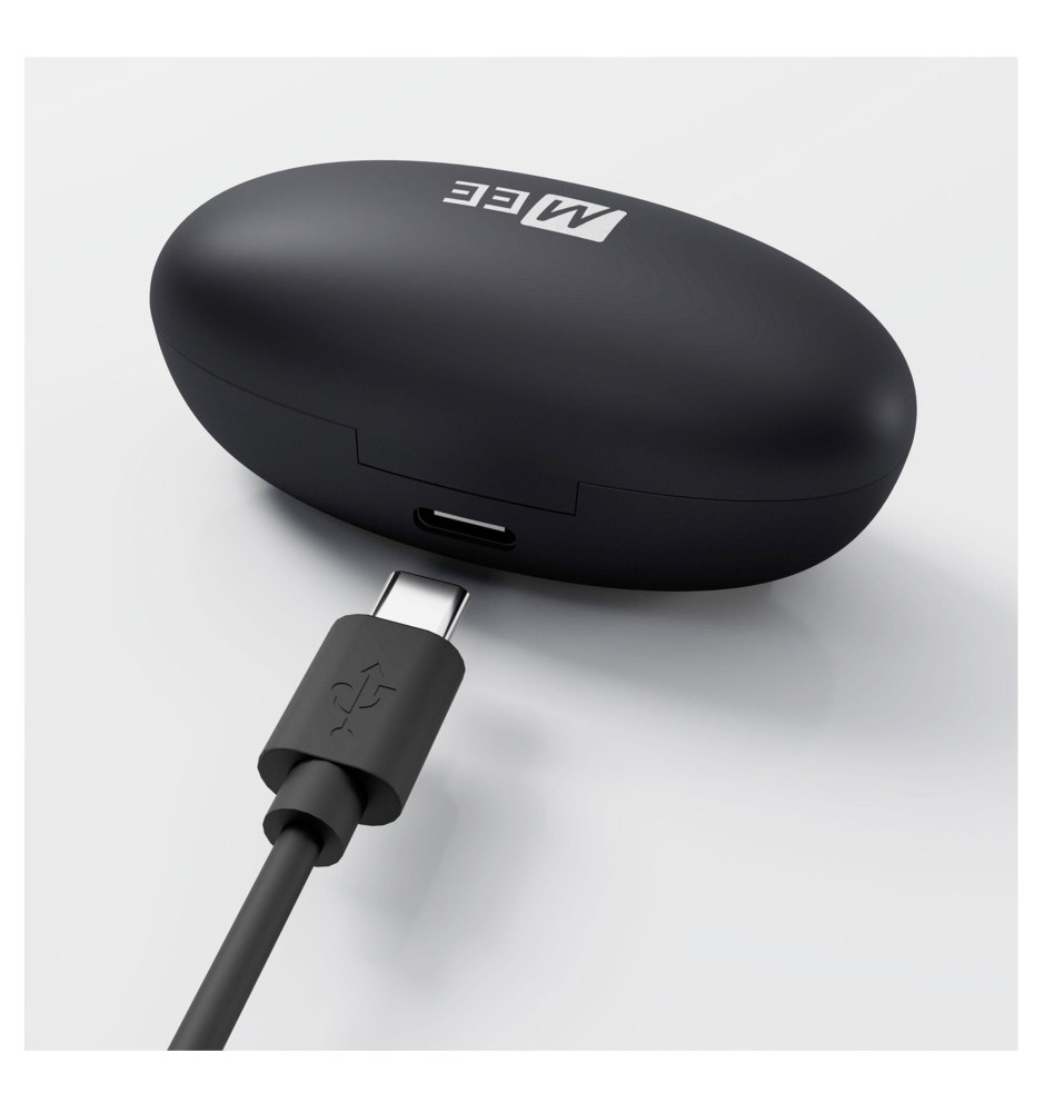 W pełni naładowane słuchawki MEE audio Pebbles pozwalają na 8 godzin nieprzerwanego odtwarzania muzyki. Przechowywać i przenosić można je w dołączonym etui służącym do przechowywania i ładowania słuchawek. Posiada ono złącze USB typu C pozwalające na szybkie ładowanie w około 2 godziny.