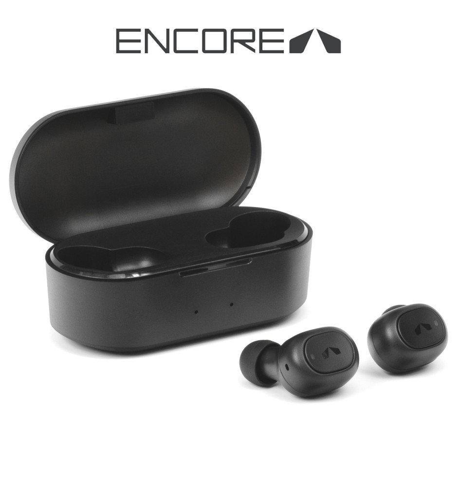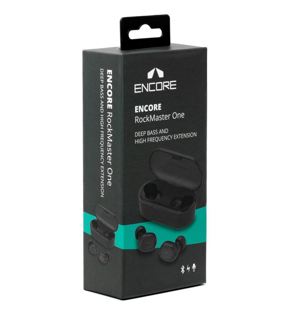 Encore Rockmaster One to wysokiej jakości słuchawki dokanałowe bezprzewodowe truly wireless łączące się poprzez technologię Bluetooth 5.0, co gwarantuje najwyższą jakość połączenia oraz duży zasięg. W zestawie oprócz słuchawek znajdują się gumki silikonowe w trzech rozmiarach i etui, stanowiące jednocześnie powerbank do ich ładowania.
