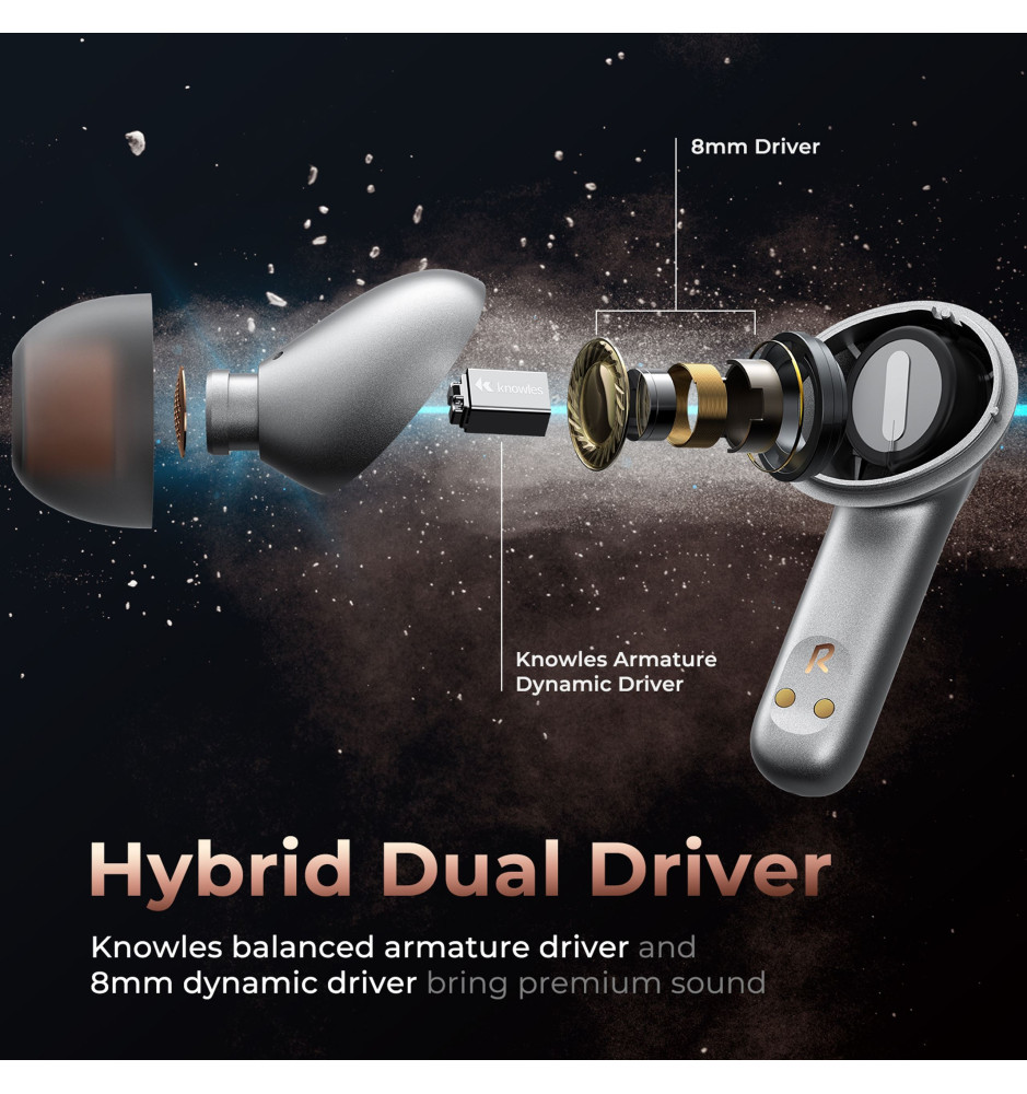 Bezprzewodowe słuchawki dokanałowe Bluetooth 5.2 z aptX Adaptive, o hybrydowej konstrukcji wykorzystującej zbalansowane armaturowe przetworniki Knowles, 8-milimetrowe przetworniki dynamiczne oraz opatentowaną zwrotnicę. Posiadają 4 wbudowane mikrofony, które dzięki wyjątkowej technologii cVc 8.0 redukującą hałas pochodzący z otoczenia, zapewniając krystalicznie czysty głos podczas rozmów.