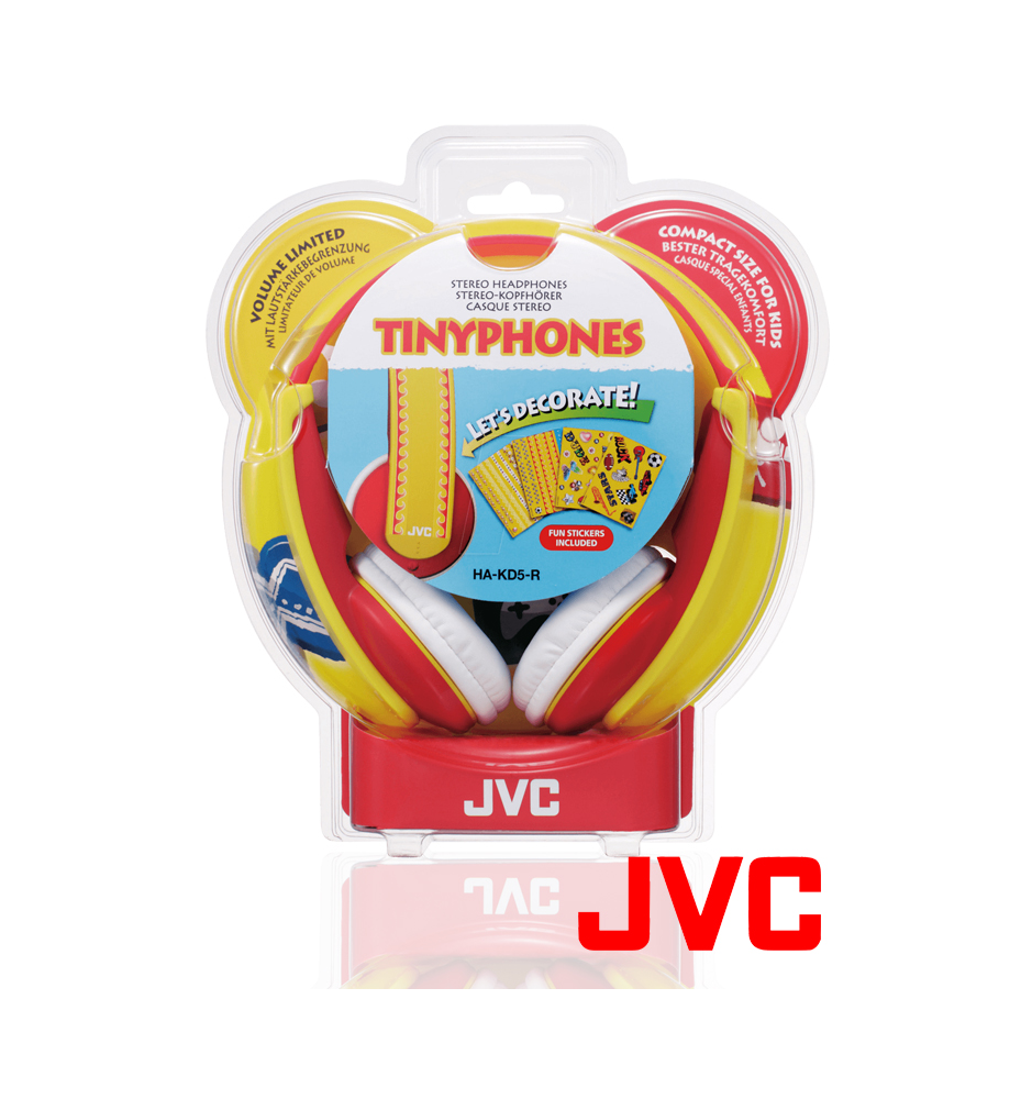 Słuchawki JVC HA-KD5 zaprojektowano z myślą o dowolnym udekorowaniu ich przez dziecko. Dostarczane są z paletą kolorowych naklejek służących do dowolnego ozdobienia słuchawek. Szeroki pałąk daje duże możliwości zdobienia według indywidualnej fantazji każdego dziecka.