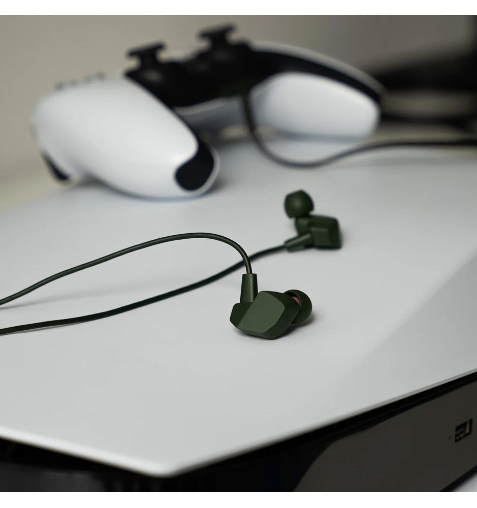 Obudowa z tworzywa ABS zapewnia trwałość przy jednoczesnym zachowaniu niskiej masy – słuchawki ważą tylko ok. 20 g. Cała konstrukcja utrzymana jest w unikalnej, ciemnooliwkowej barwie „Dark Olive” o gamingowym charakterze. Kabel o długości 1,2 metra wykonany jest z beztlenowej miedzi OFC i posiada trzyprzyciskowy pilot z wbudowanym mikrofonem - idealny do czatów głosowych w grach czy rozmów telefonicznych.