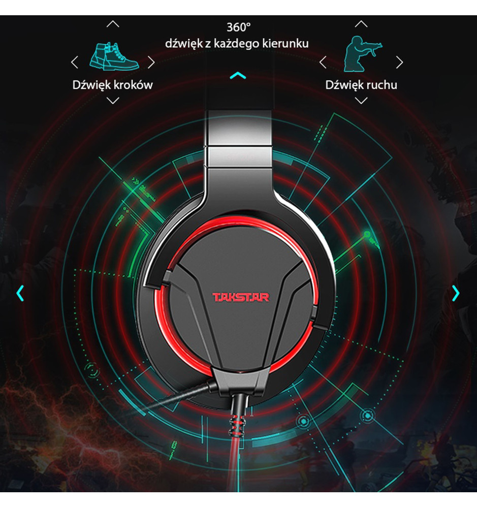 Zestaw słuchawkowy został specjalnie zaprojektowany, aby dawać przewagę w grach komputerowych. Znakomicie przechwytuje audio z gier, co pozwala usłyszeć nawet najdrobniejszy ruch czy działania przeciwnika. Dodatkowo jest wyposażony w dźwięk 360 stopni oraz technologię namierzania przeciwników, dzięki czemu dokładnie namierzysz gdzie jest wróg!