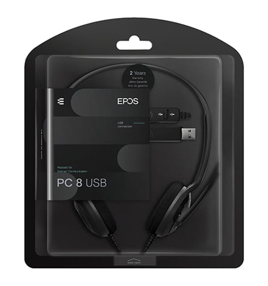 Słuchawki EPOS / Sennheiser PC 8 USB wyposażono również w złącze USB "plug & play" umożliwiające proste podłączenie słuchawek do komputera PC lub Mac, aby w szybki i prosty sposób cieszyć się wysokiej jakości rozmowami.