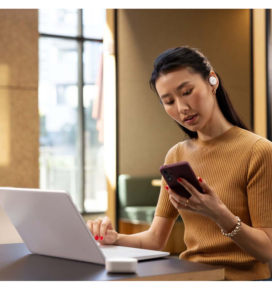 Łącznie 8 mikrofonów (po 4 w słuchawce) oraz technologia Qualcomm aptX Voice dla szerokopasmowych połączeń głosowych (32 kHz) pozwalają na komfortowe prowadzenie rozmów z niezwykle wyrazistym głosem. Funkcja Multipoint pozwala na sparowanie słuchawek z dwoma urządzeniami jednocześnie.