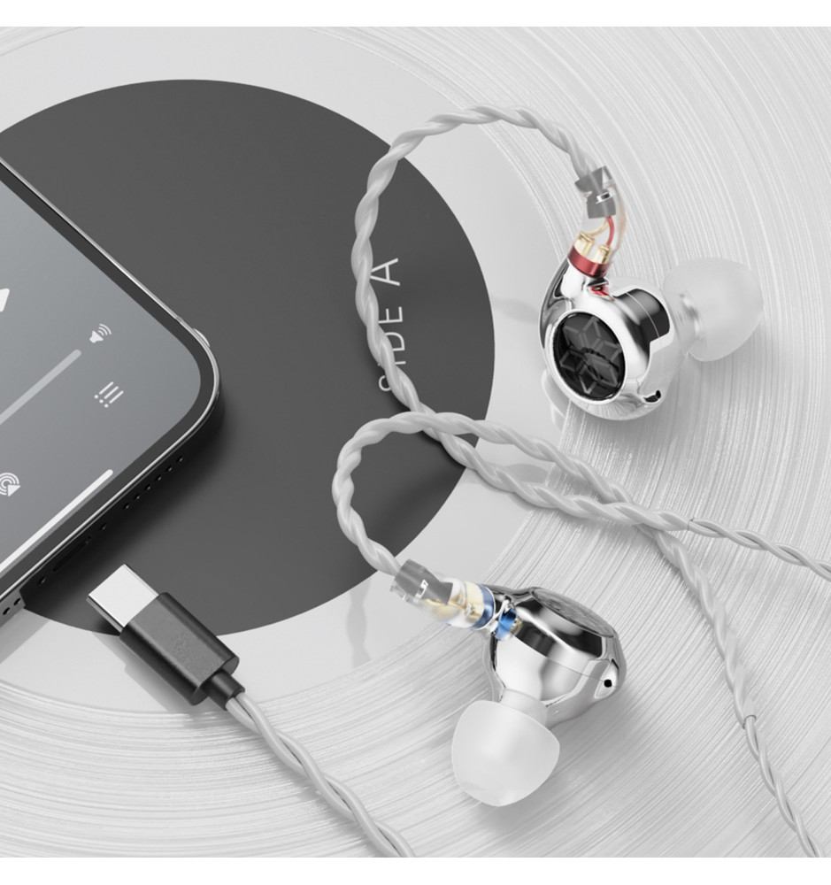 Monitory dokanałowe FD11 Type-C wykorzystują asymetryczny układ magnetyczny z magnesami neodymowymi N52, co zwiększa gęstość pola magnetycznego i zapewnia lepszą odpowiedź na transjenty oraz niższe zniekształcenia. Wbudowany niezależny chip DSP obsługuje dekodowanie audio do 96kHz/24bit, dzięki czemu słuchawki mogą przetwarzać dźwięk z większą precyzją, oferując bogatsze i bardziej szczegółowe brzmienie.