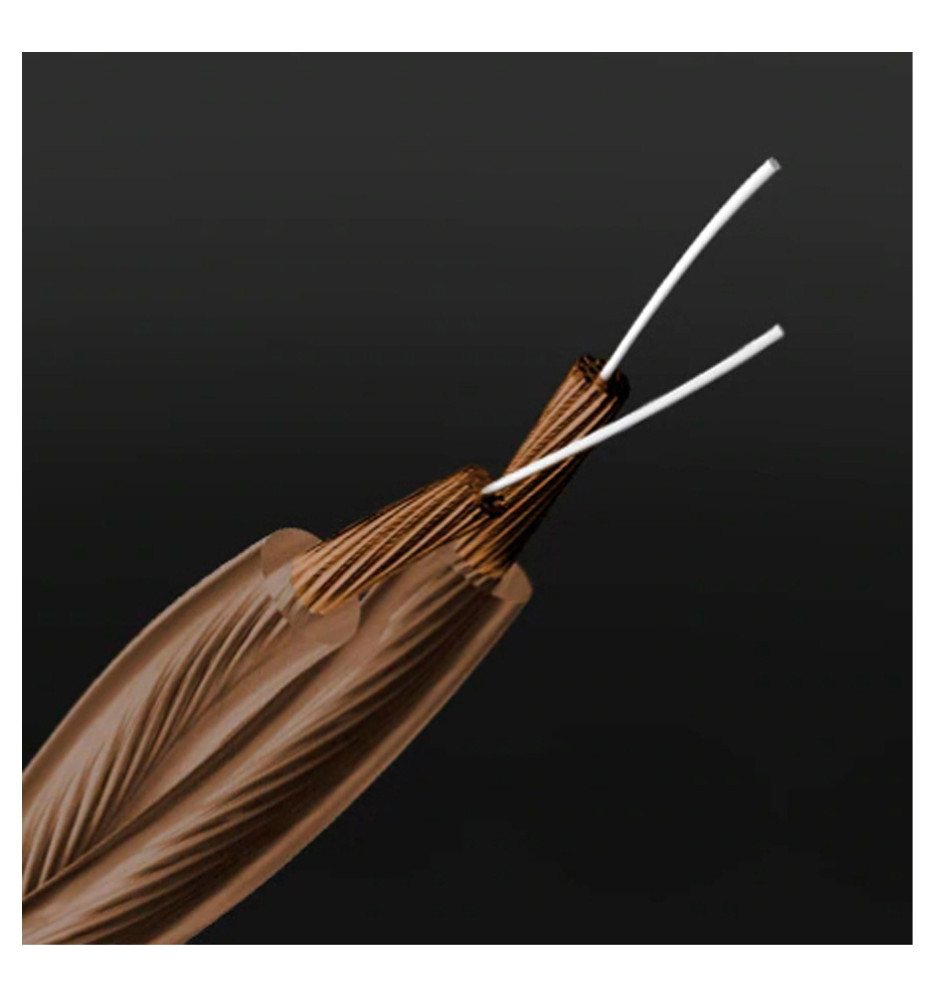 Dołączony do słuchawek wymienny przewód zakończony wtykiem 3,5mm stereo jest podłączany za pomocą pozłacanych wtyków 2PIN i wykonany z czystej miedzi beztlenowej OFC. Zapewnia najwyższą jakość sygnału, brak zakłóceń i odporność na uszkodzenia mechaniczne i korozję.