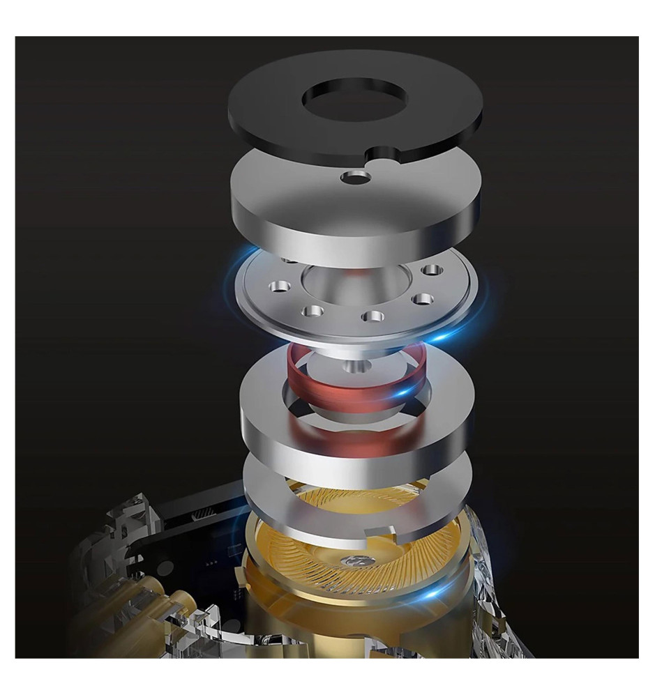 Za reprodukcję dźwięków w słuchawkach odpowiada połączenie 10-milimetrowego magnetycznego przetwornika dynamiczne oraz customowych zbalansowanych armaturowych przetworników 31736. Dzięki temu odtwarzając swoją ulubioną playlistę otrzymamy wyjątkowo czyste wysokie tony i bogatą głębię przy niskich częstotliwościach, co wydatnie pozytywnie przełoży się na nasze wrażenia odsłuchowe.